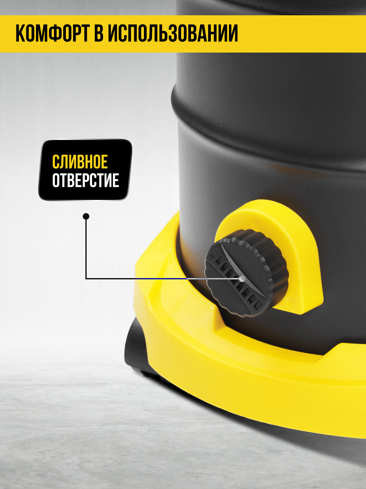 Пылесос Kolner KVC 20L-S, сухой/влажный, 20 л, 1200Вт, жёлтый, чёрный
