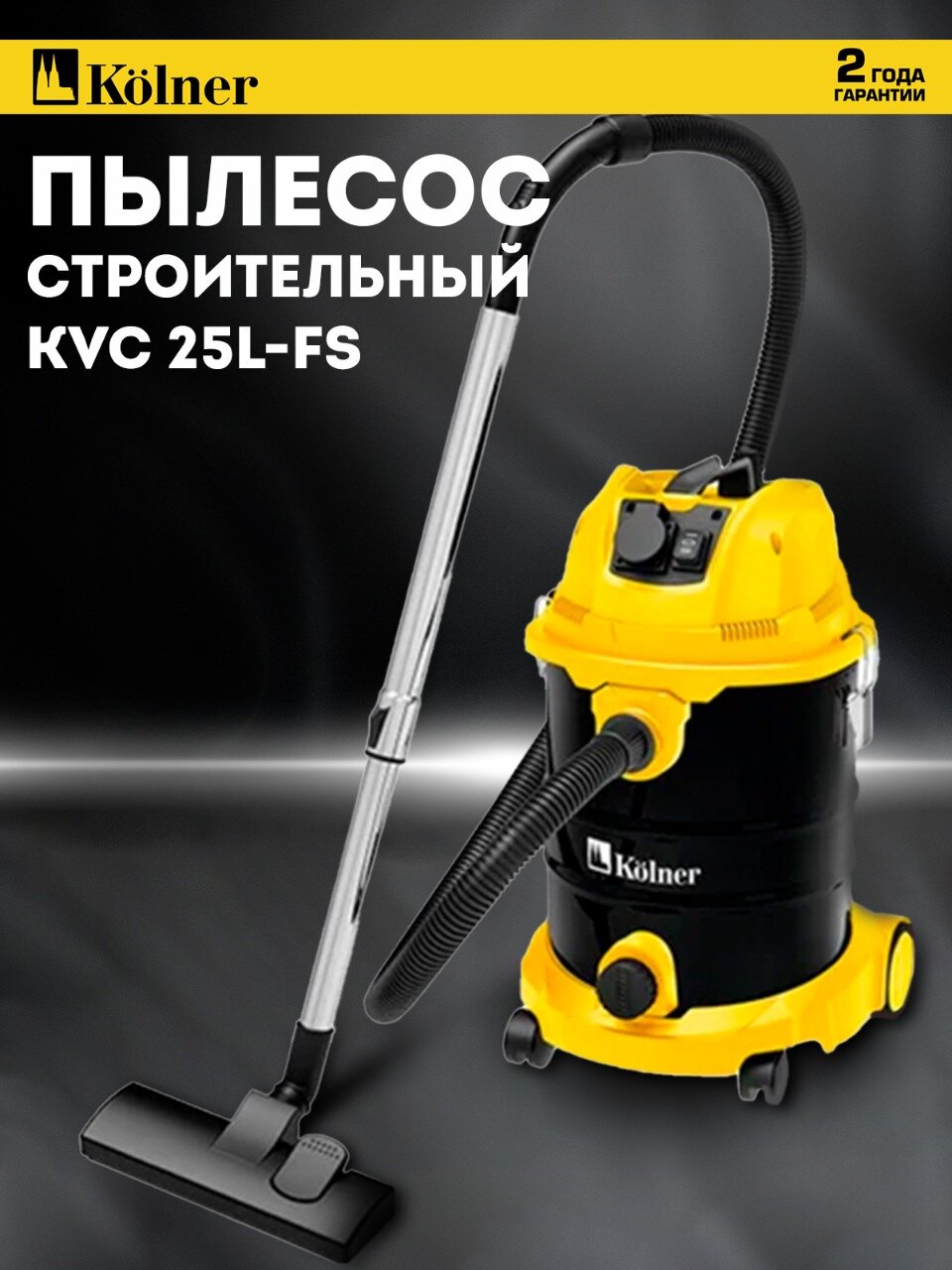 Пылесос Kolner KVC 25L-FS, сухой и влажный, мощность 1400Вт, пылесборник 25л интересное: