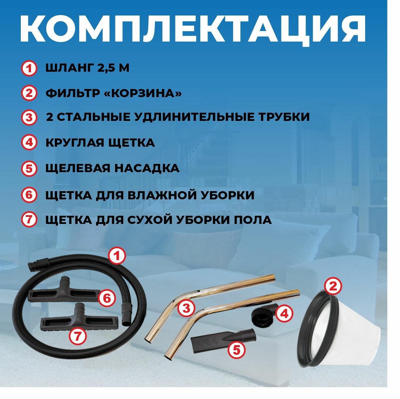 Профессиональный пылеводосос для клининга и автомойки 3000 Вт интересное: