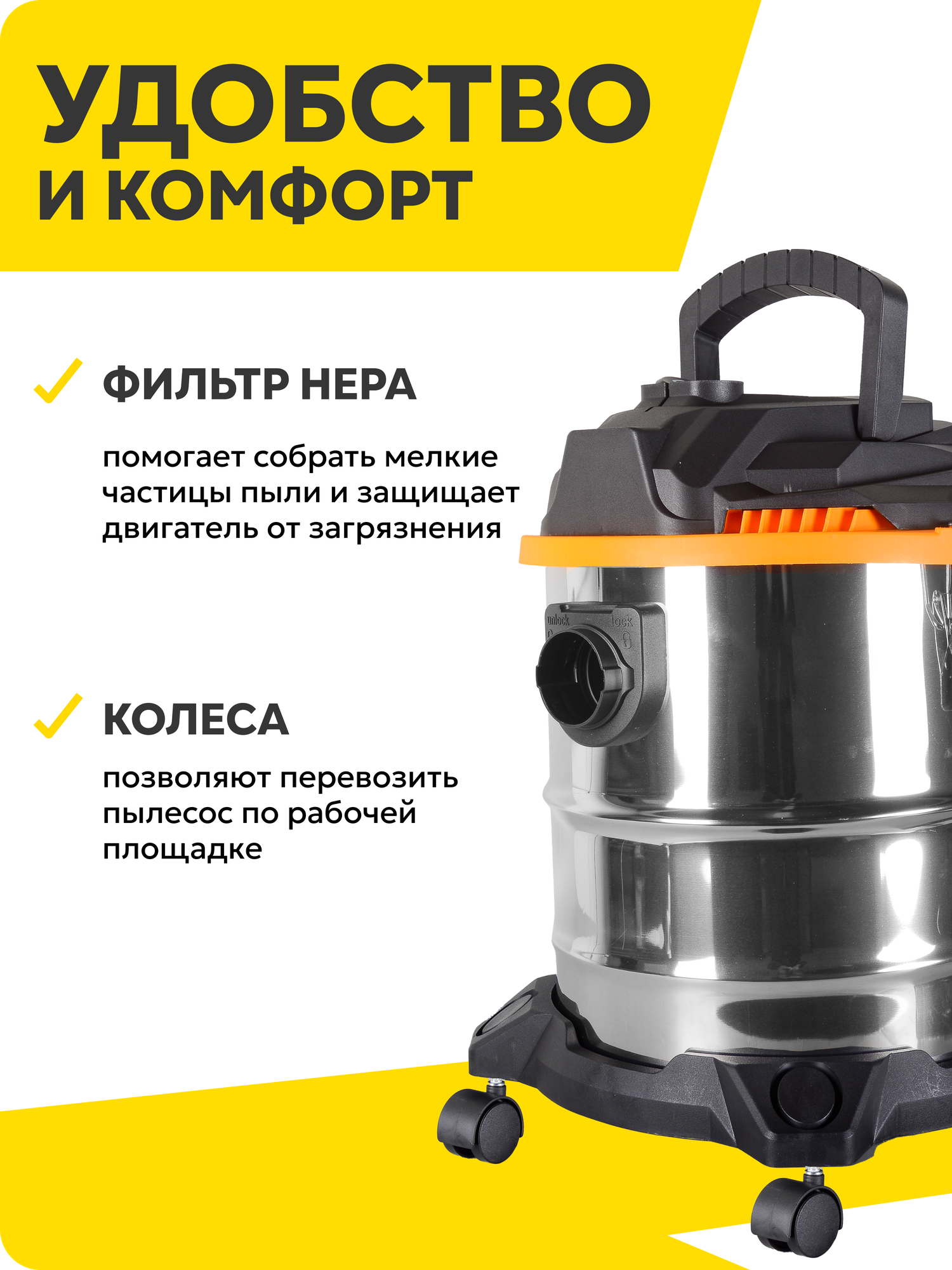 Строительный пылесос СП-2015 Huter, 1500 Вт, 1,8м шланг, сухая и влажная уборка, контейнер 20л. интересное: