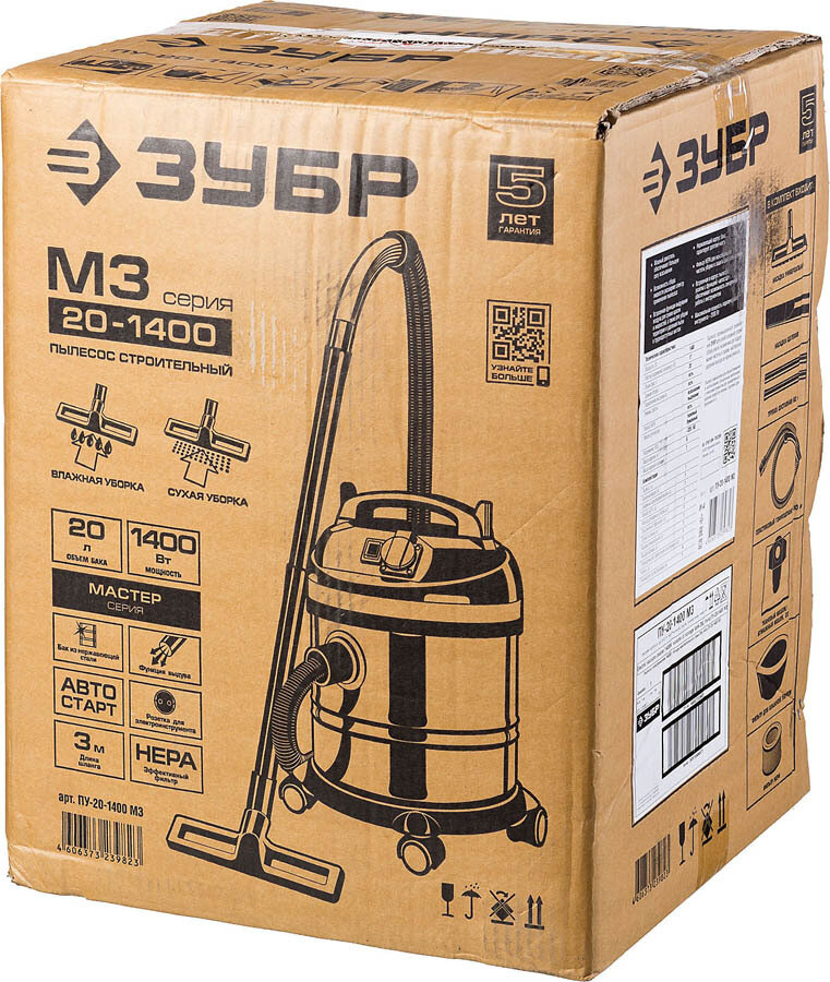 ЗУБР 1400 Вт, пылесос строительный ПУ-20-1400 М3 Мастер интересное: