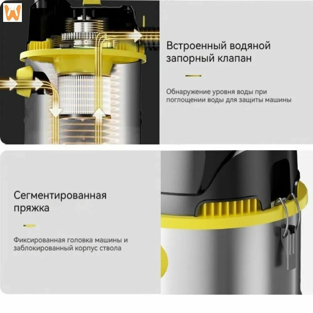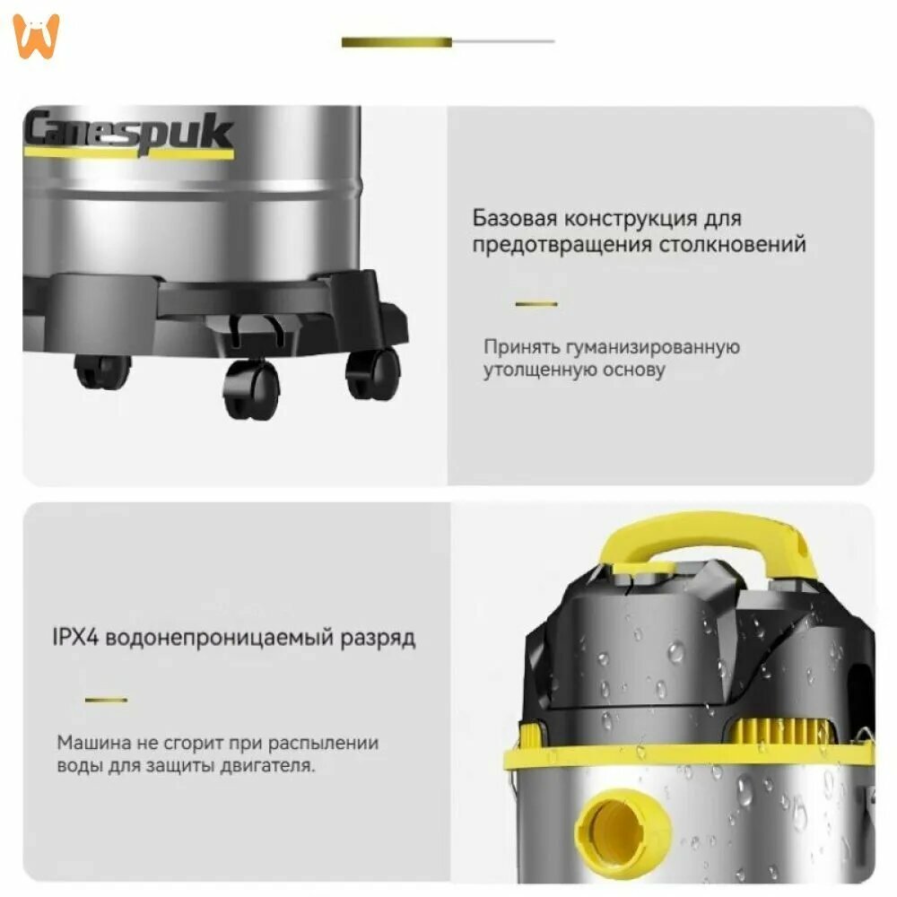 Строительный пылесос CANESPUK N620, желтый, 25л, мощность 1800Вт, 500Вт всасывания интересное: