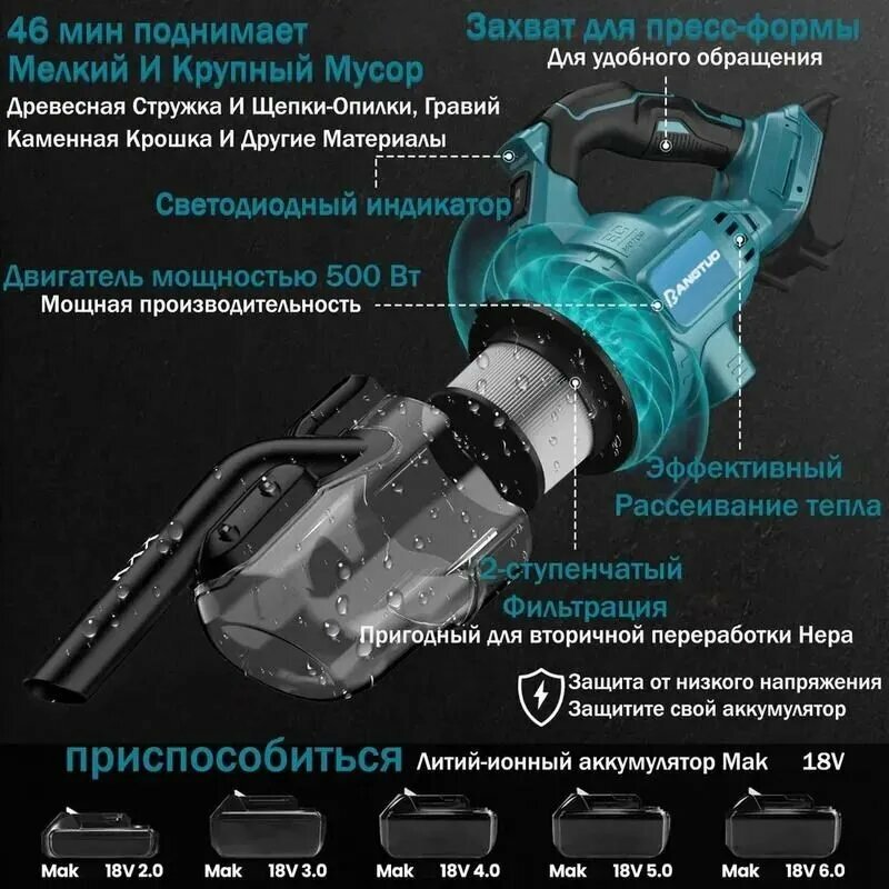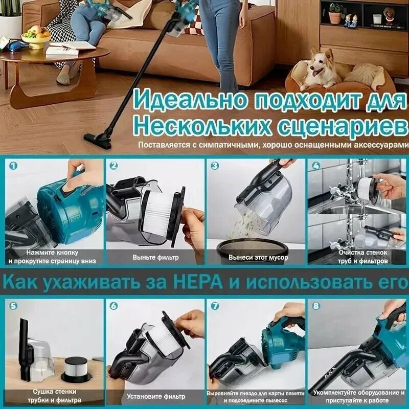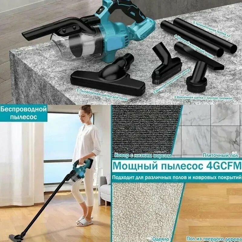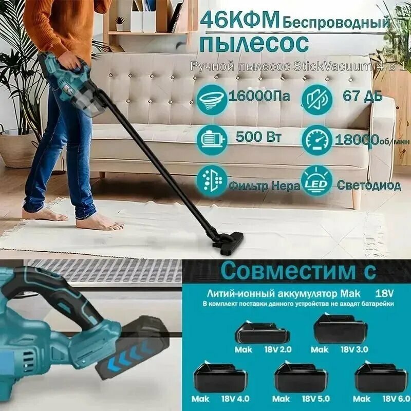 Беспроводной бытовой пылесос, работающий от аккумулятора Makita (аккумулятор в комплект не входит). интересное: