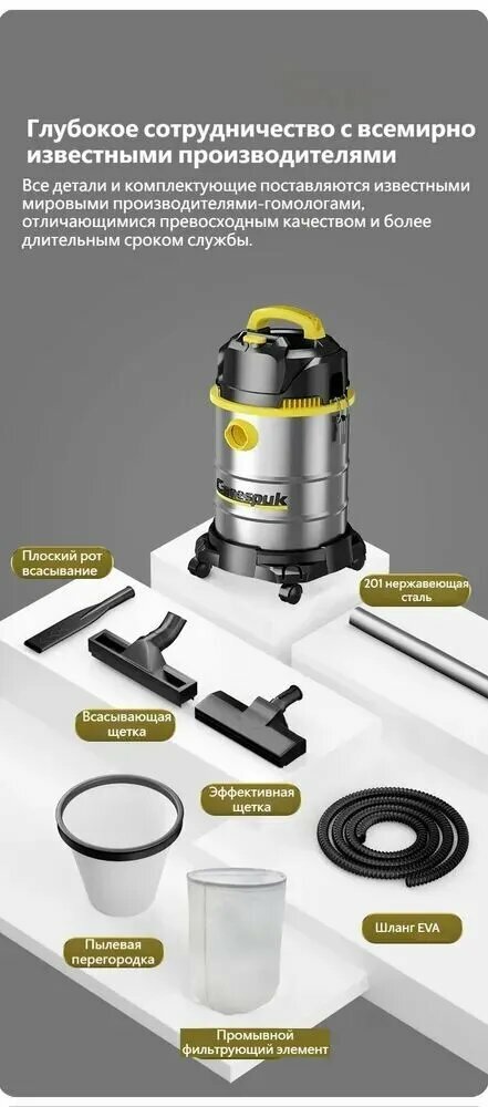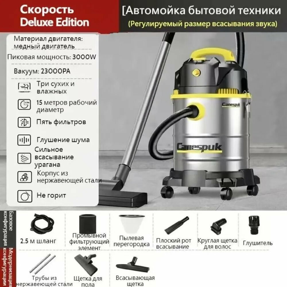 CANESPUK Мокрый и сухой обдув три в одном Бытовой пылесос для,30 л, 3000 Вт, Рабочий диаметр 13 метров,23000PA интересное:
