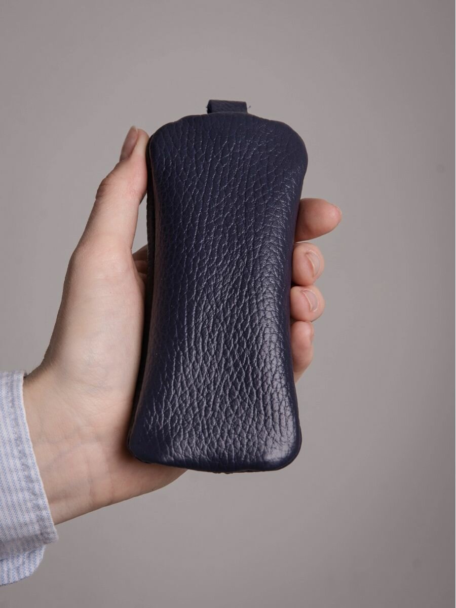 Ключница КОЖАНЫЙ ЦВЕТОК, зернистая фактура, синий интересное: