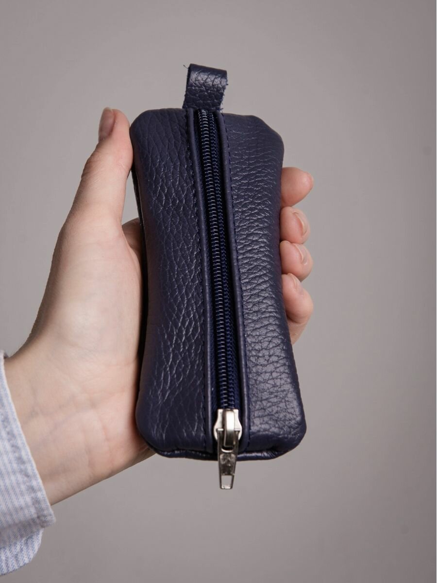 Купить Ключница КОЖАНЫЙ ЦВЕТОК, зернистая фактура, синий