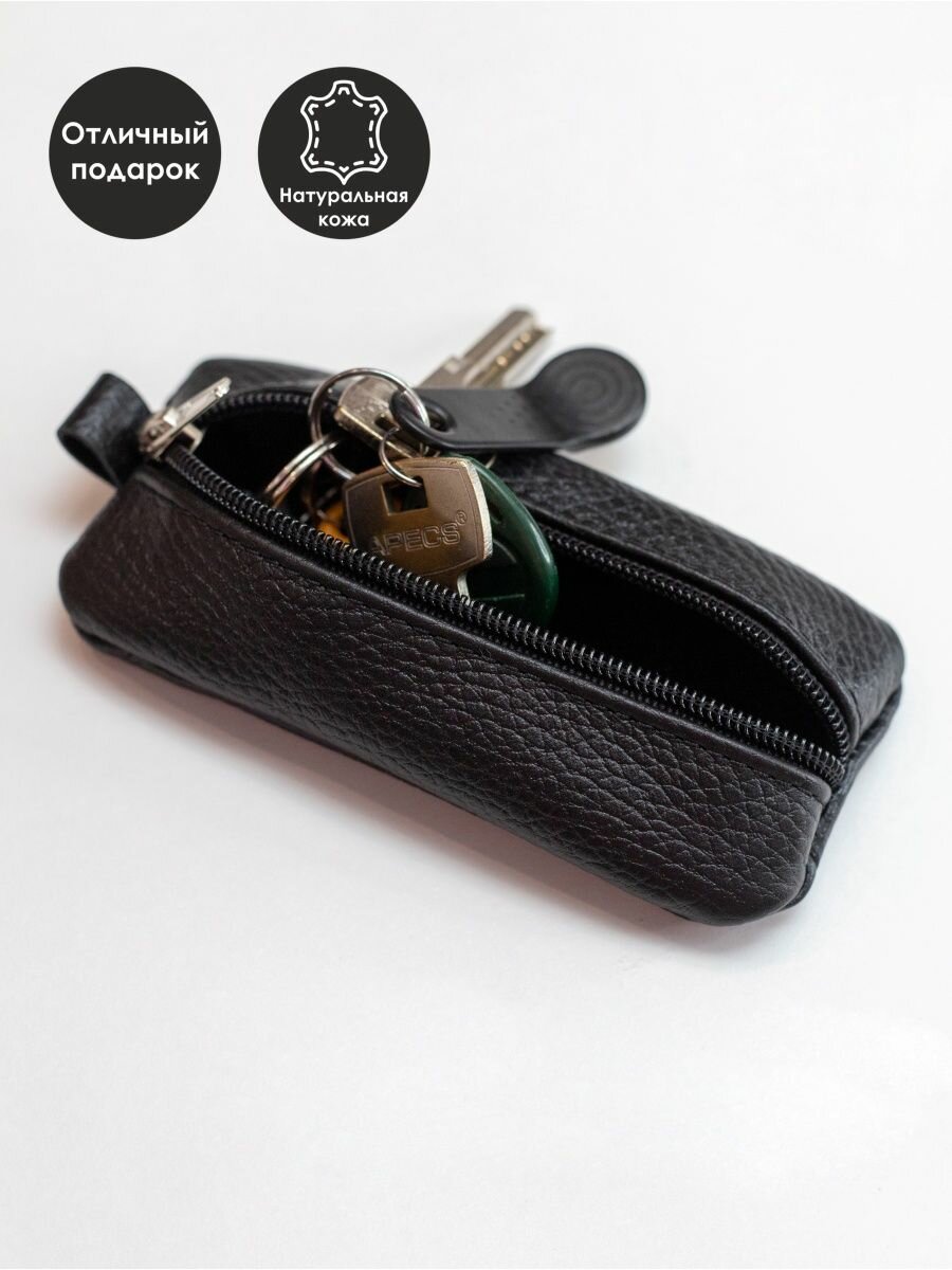 Ключница КОЖАНЫЙ ЦВЕТОК, зернистая фактура, черный интересное: