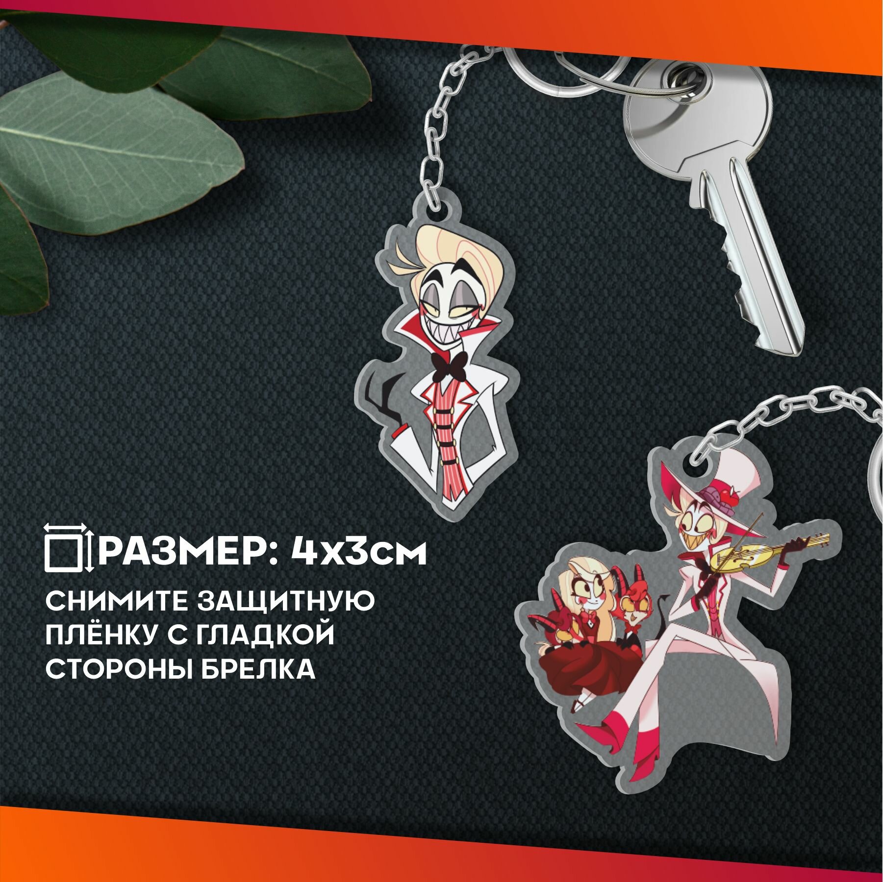 Брелок Sticker Joy, гладкая фактура, 2 шт., бесцветный, черный, красный