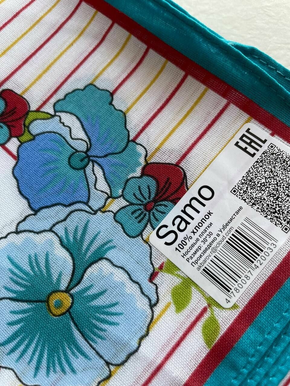 СохранитьНосовой платок SAMO, белый/бирюзовый интересное: