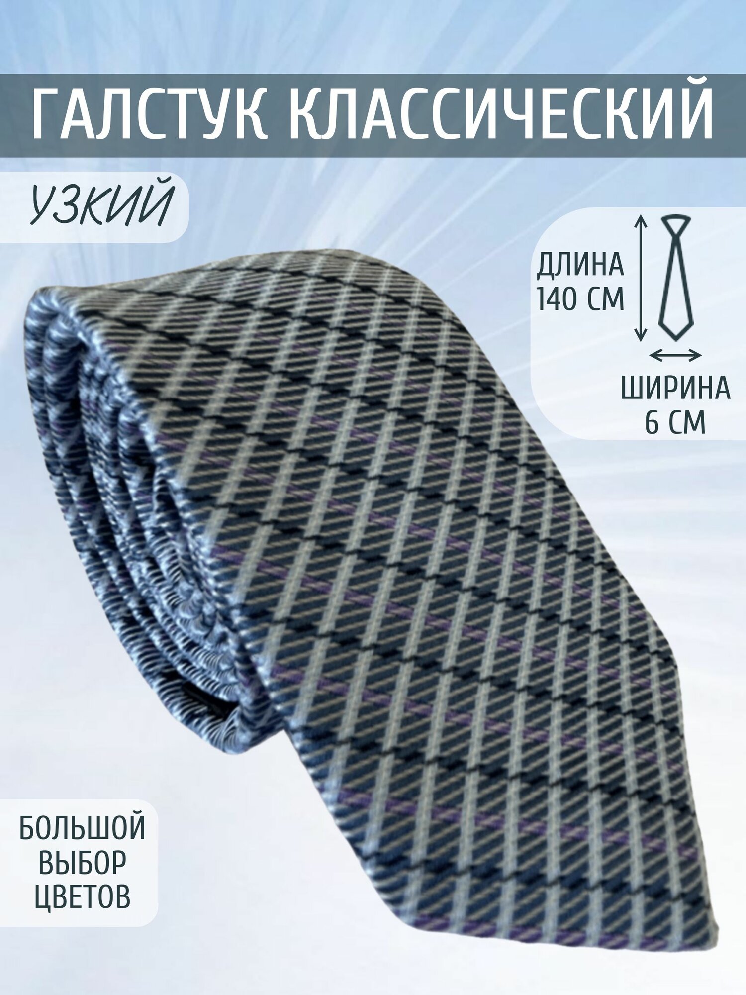 Галстук узкий мужской синий в сиреневую полоску
