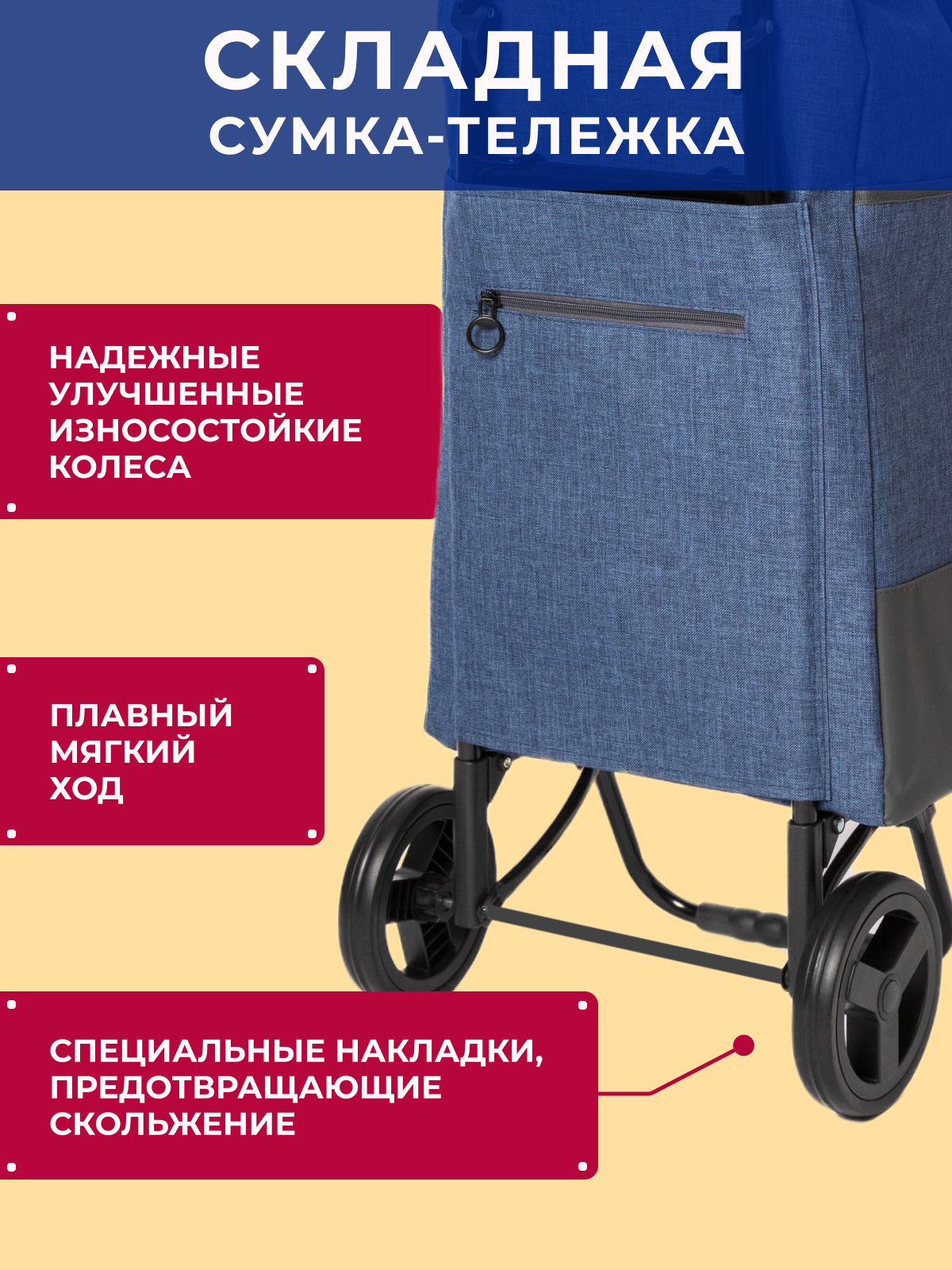 Купить Сумка-тележка BAUDET, 46 л, 38х96х30 см, синий джинс