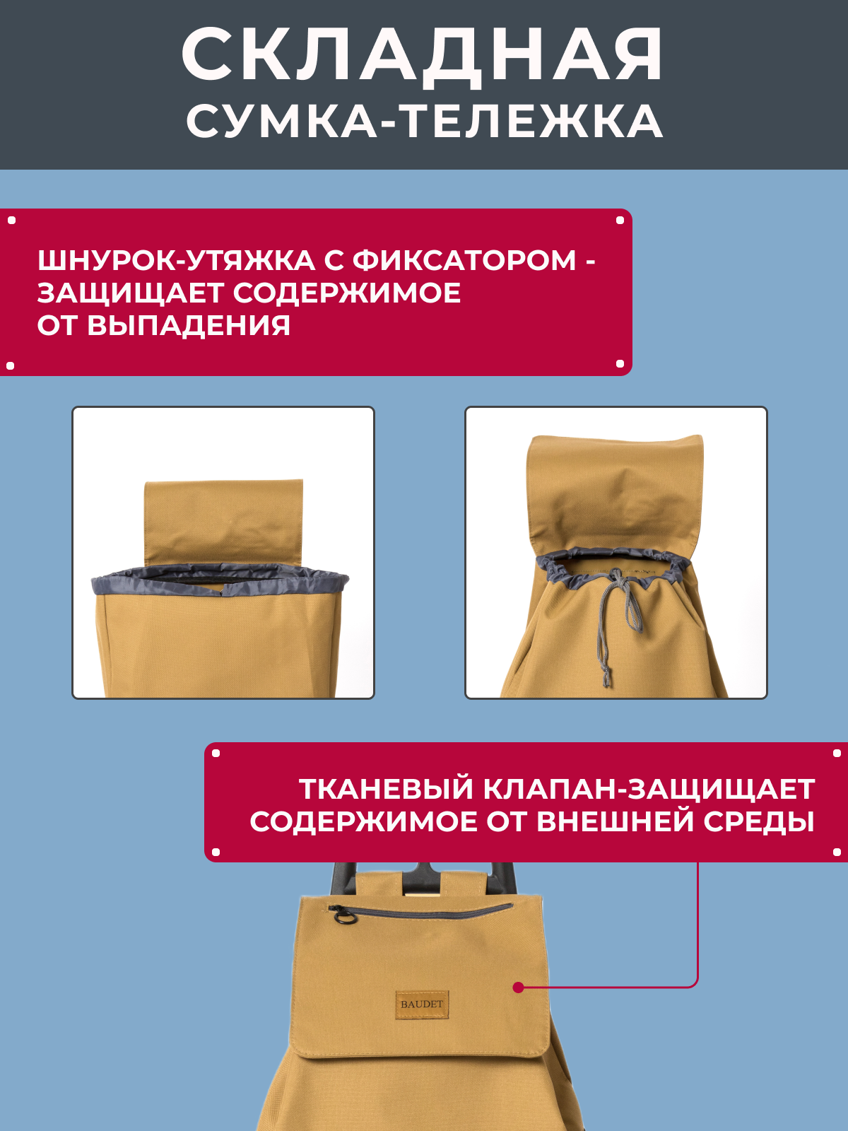 Купить Сумка-тележка BAUDET, 46 л, 38х96х30 см, бежевый