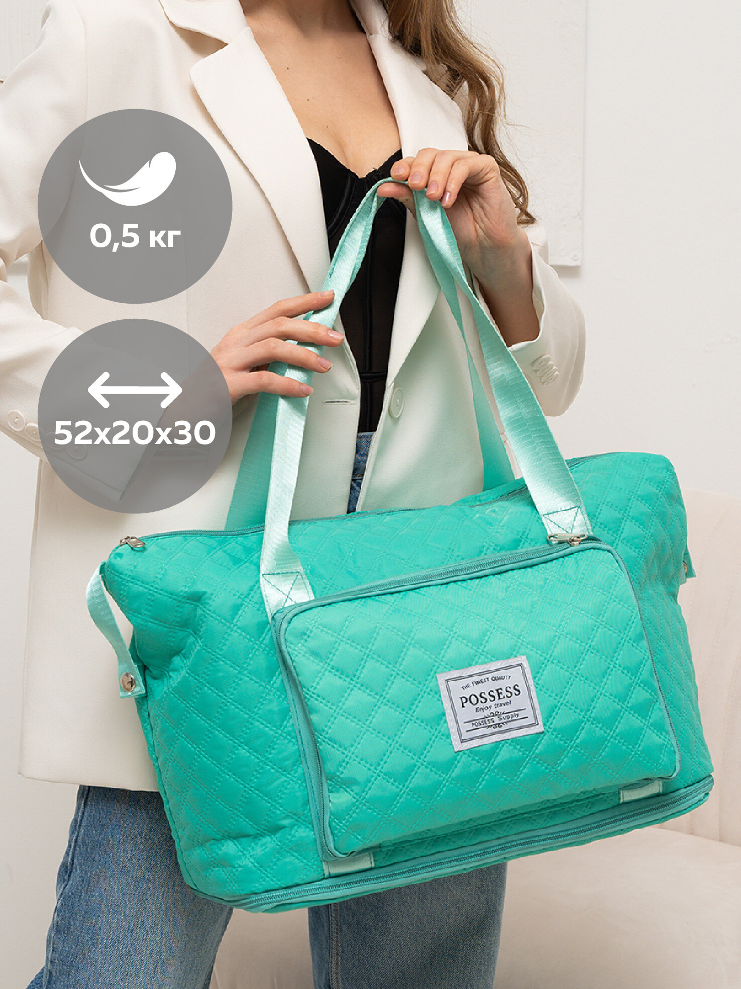 Купить Сумка дорожная POSSESS, 20х30х52 см, ручная кладь, бирюзовый