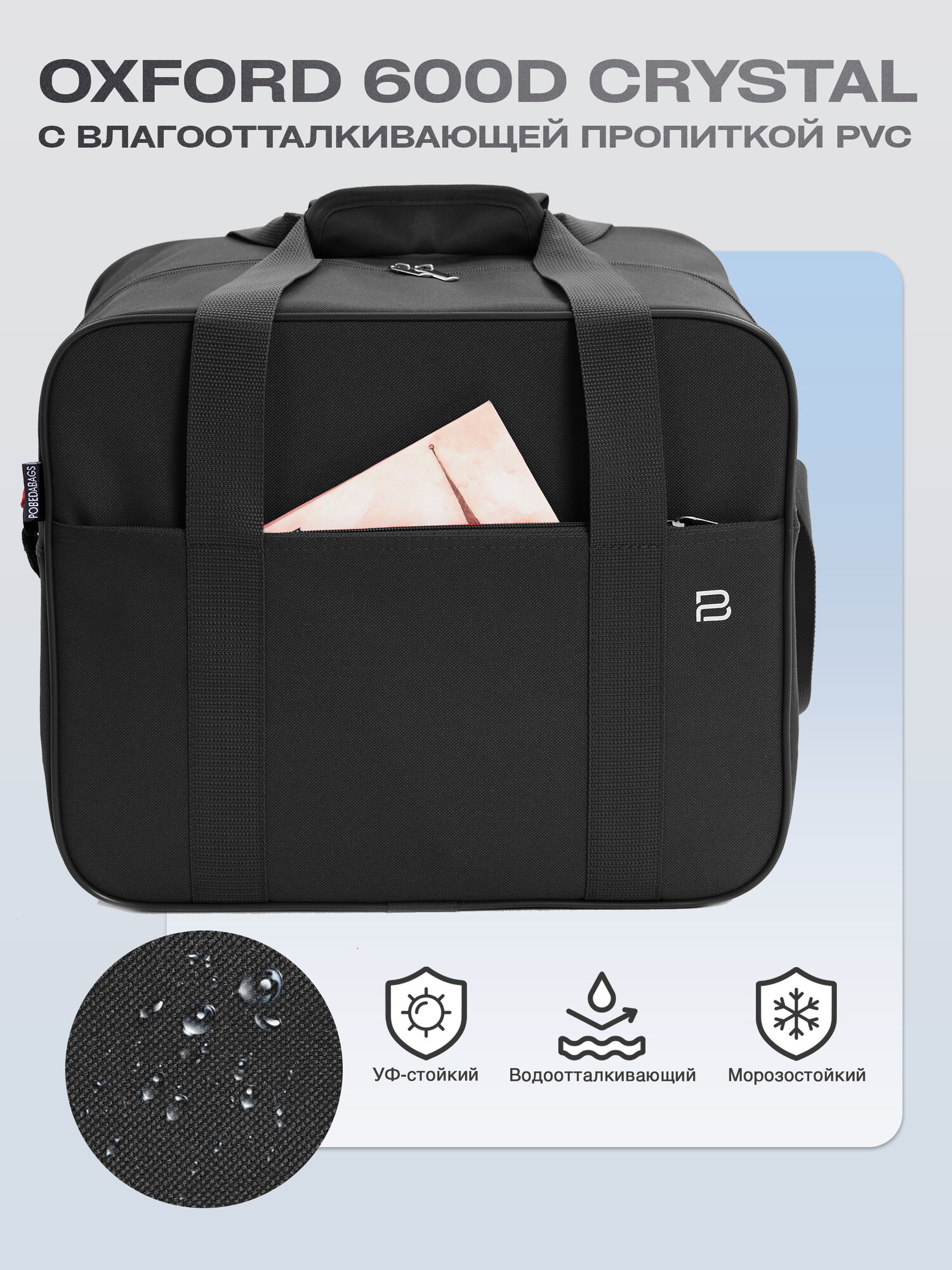 Сумка дорожная PobedaBags, 26 л, 27х30х36 см, ручная кладь, черная интересное:
