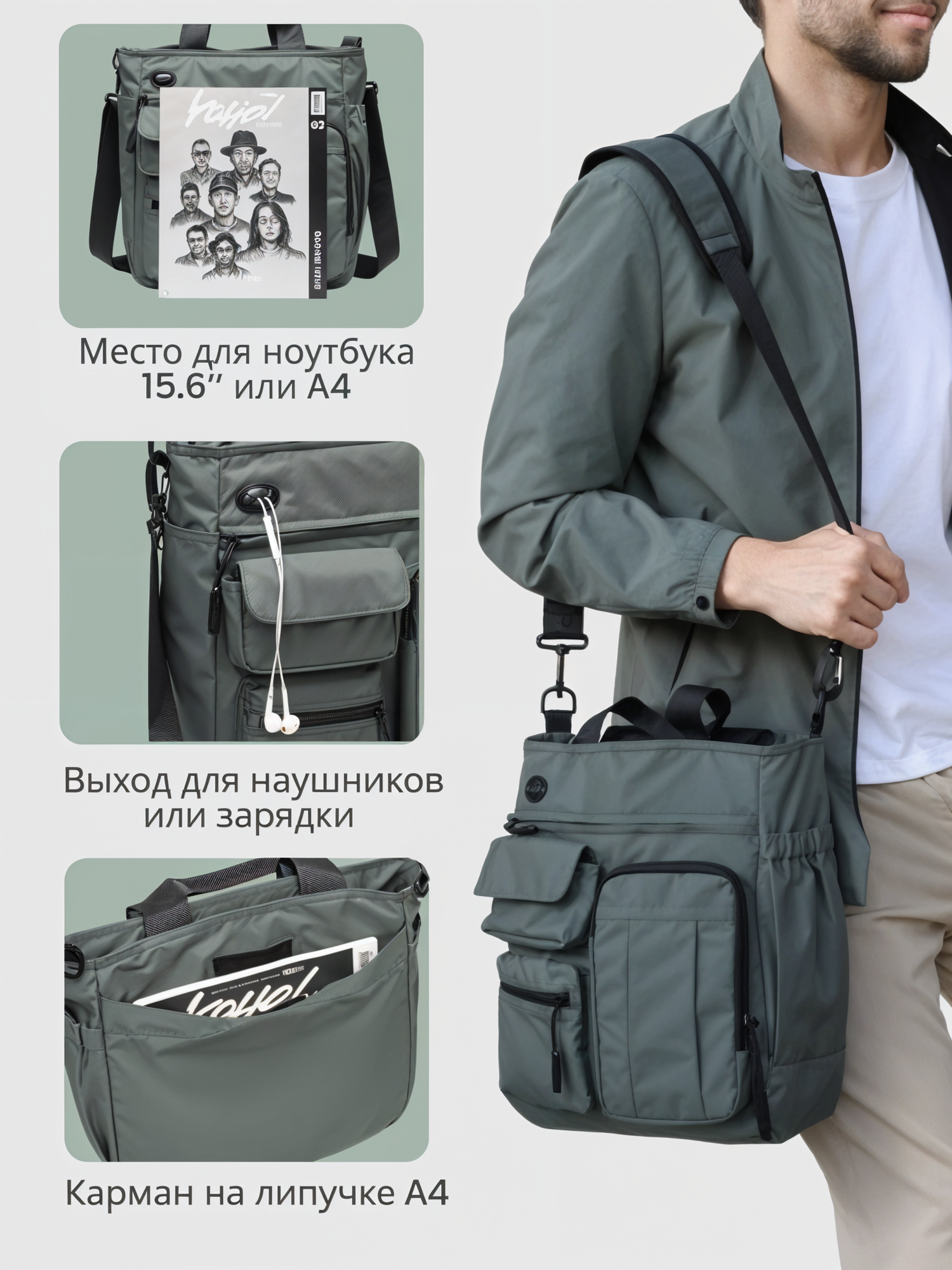 Сумка дорожная Your Way, 11х34х30 см, ручная кладь, серо-зеленый