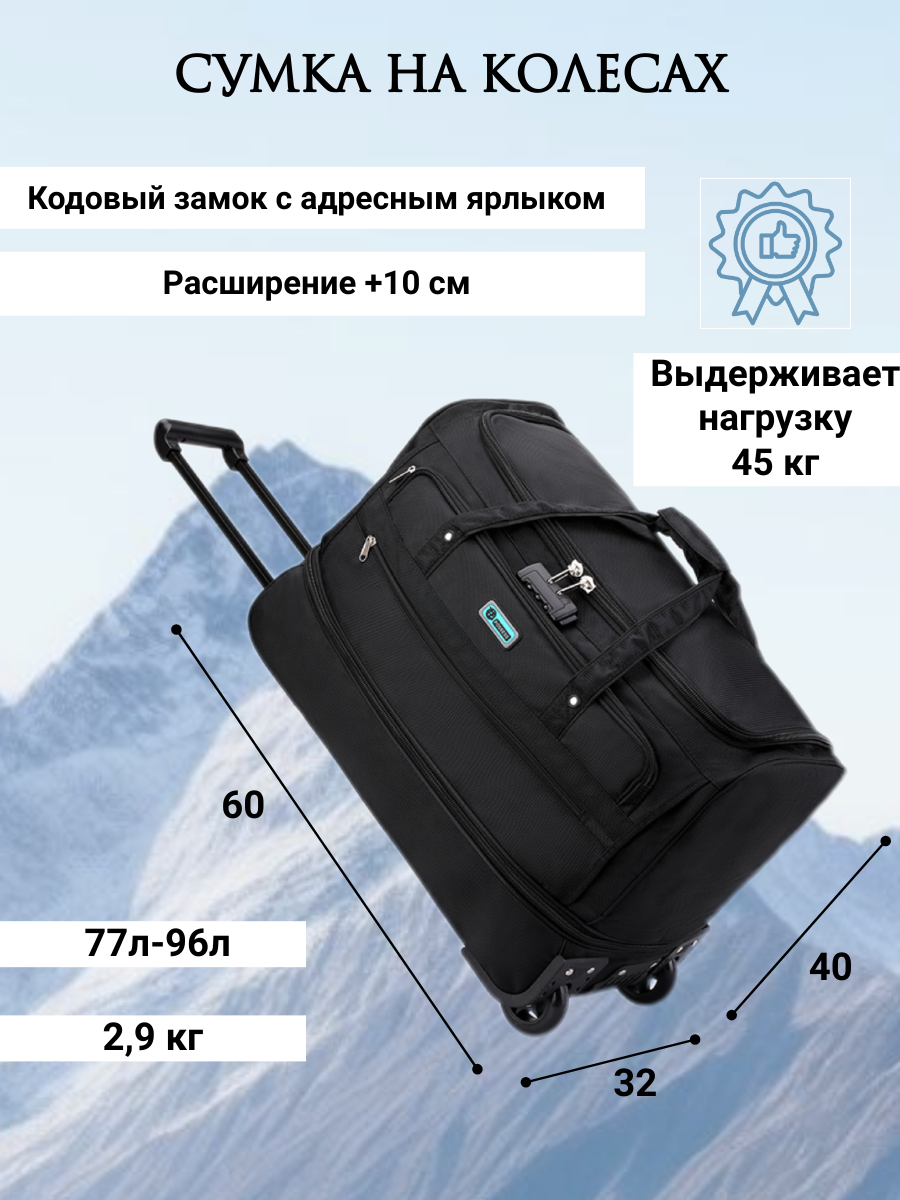 Сумка дорожная POSSESS, 77 л, 32х60х40 см, ручная кладь, черный интересное: