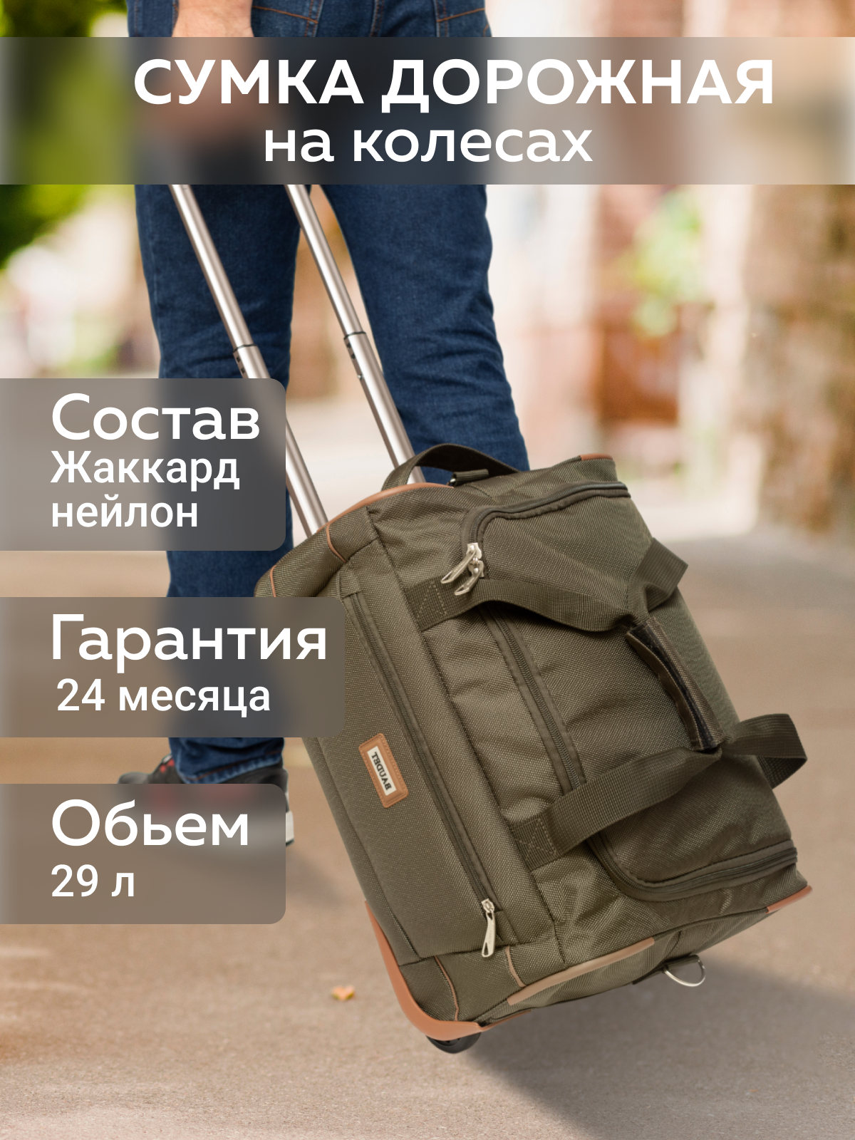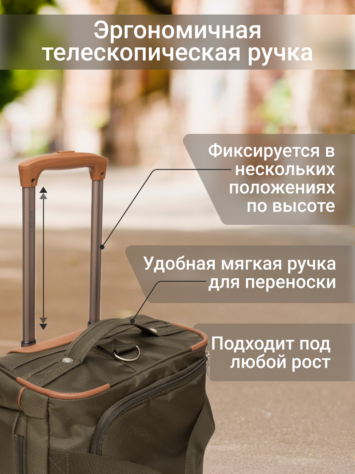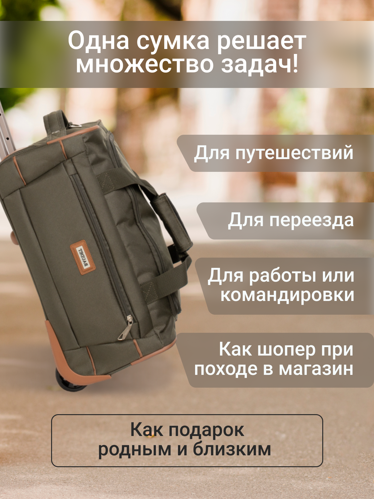 Сумка дорожная BAUDET, 29 л, 33х45х23 см, ручная кладь, зеленый/коричневый интересное: