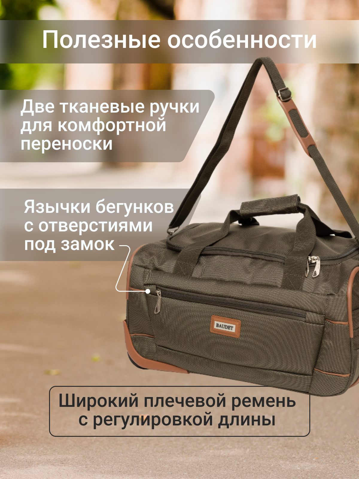 Ниже Вы можете прочитать отзывы на Сумка дорожная BAUDET, 29 л, 33х45х23 см, ручная кладь, зеленый/коричневый, ознакомится с подробными характеристиками, посмотреть интересные обзоры и фотографии на Сумка дорожная BAUDET, 29 л, 33х45х23 см, ручная кладь, зеленый/коричневый.