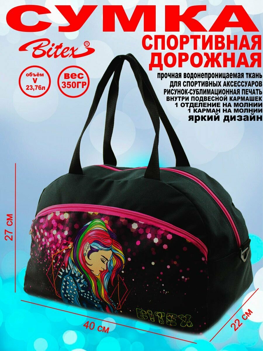 Купить Сумка Bitex, 19 л, 20.5х24.5х38 см, ручная кладь, черный/розовый