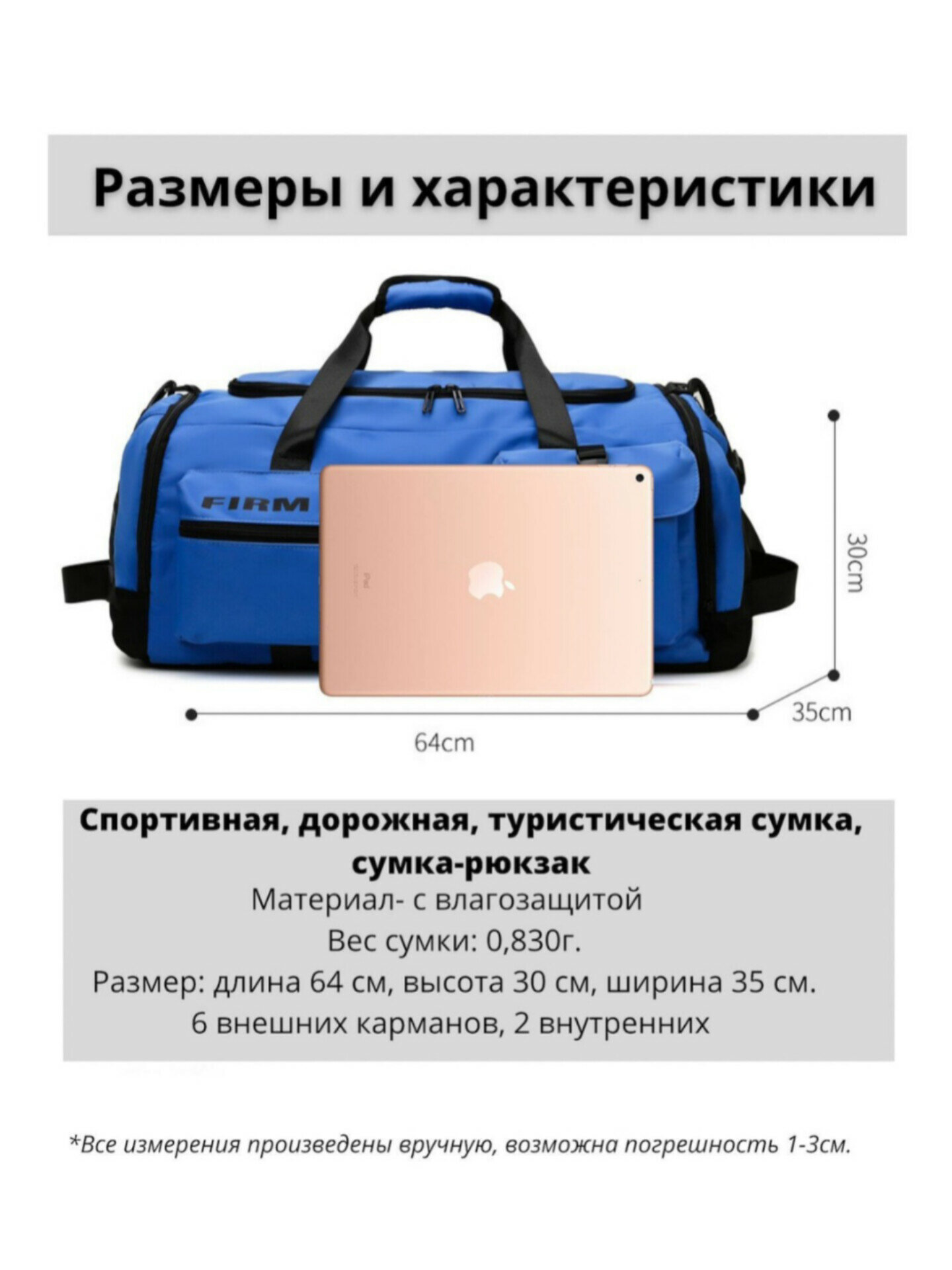 Сумка спортивная , 65 л, 35х30х64 см, ручная кладь, синий интересное: