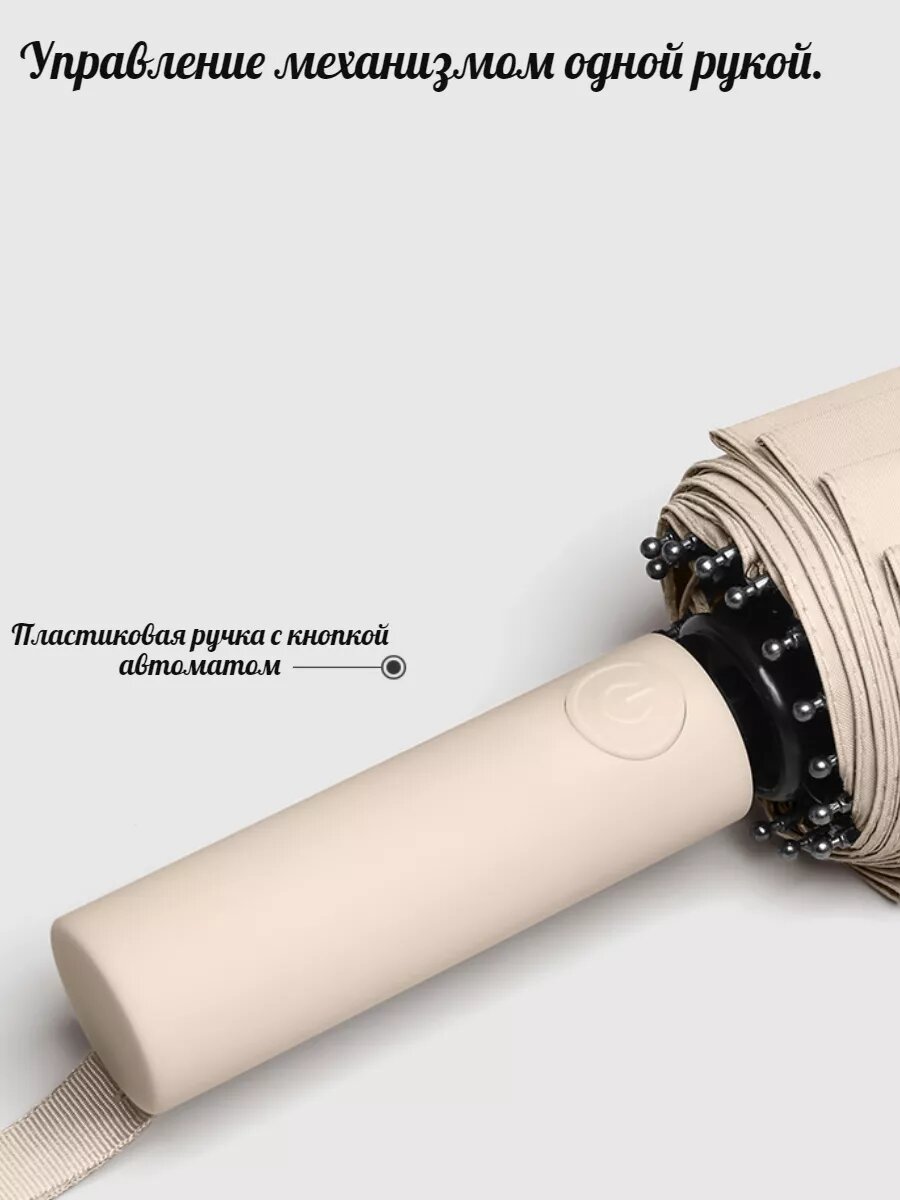 Зонт "Три Слона" женский №310-5, купол D=103 см, 10 спиц, суперавтомат бежево-черный