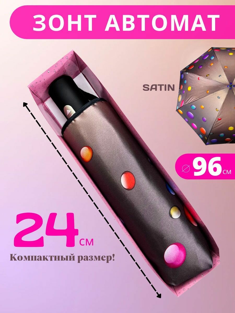Зонт "Три Слона" женский №310-5, купол D=103 см, 10 спиц, суперавтомат бежево-черный