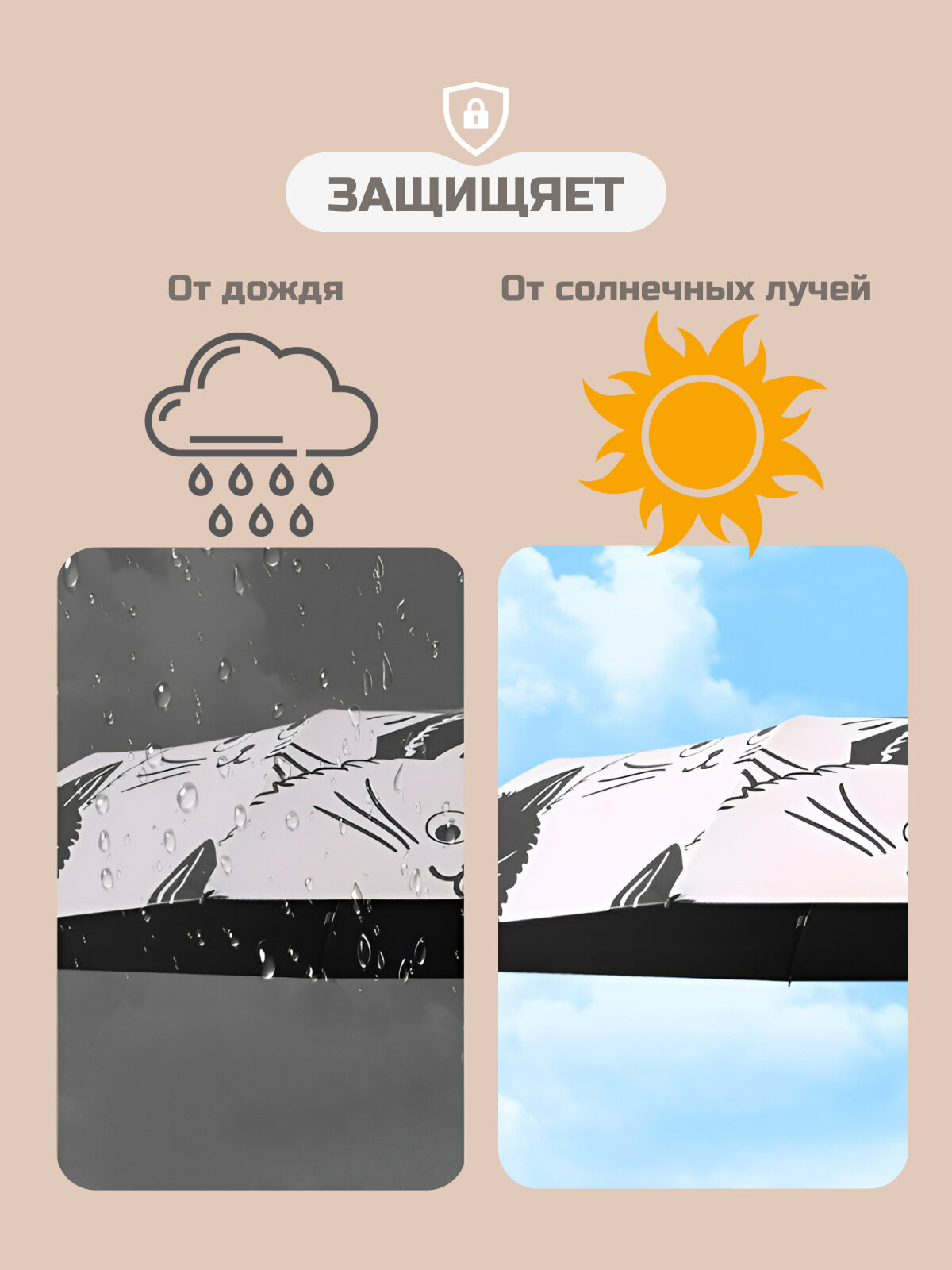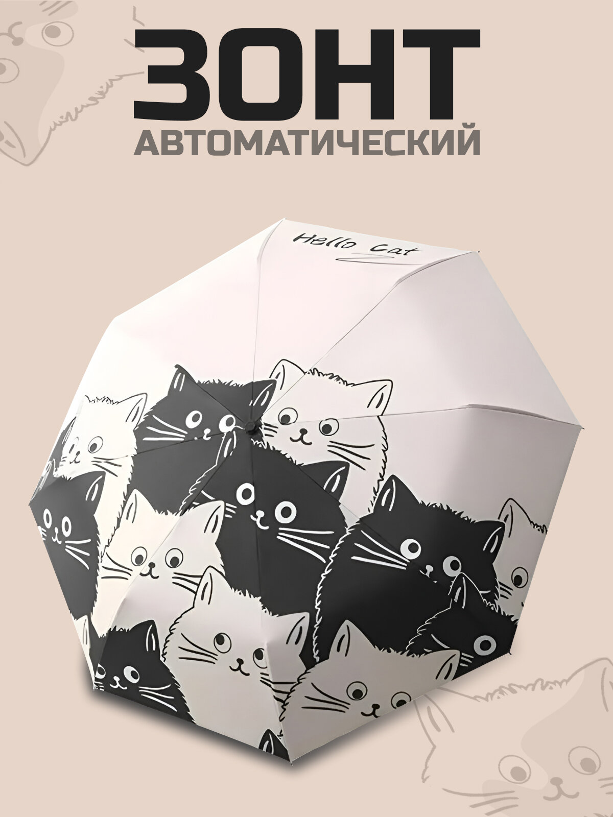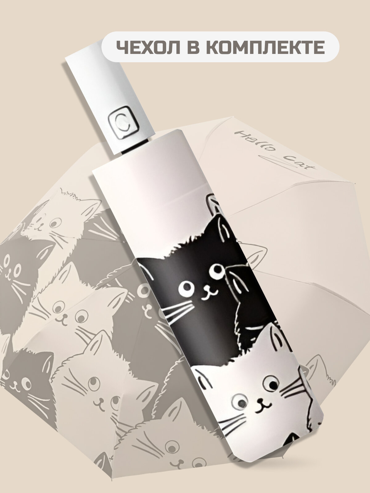 Зонт "Три Слона" женский №310-5, купол D=103 см, 10 спиц, суперавтомат бежево-черный