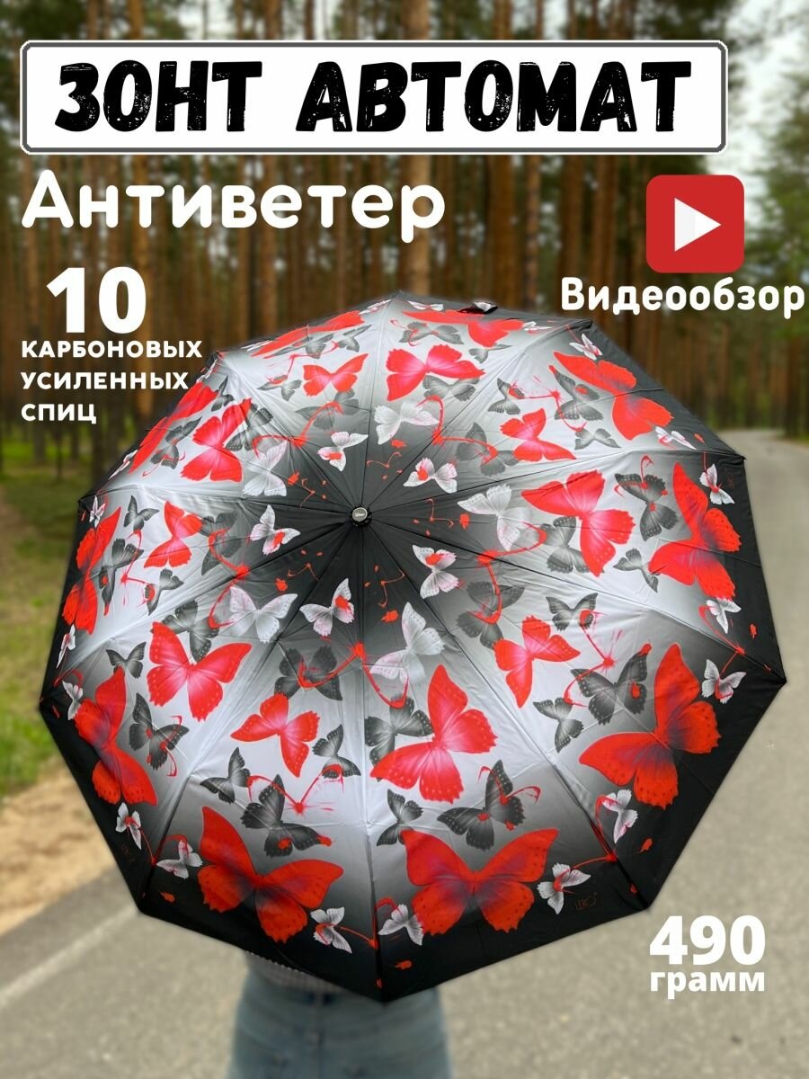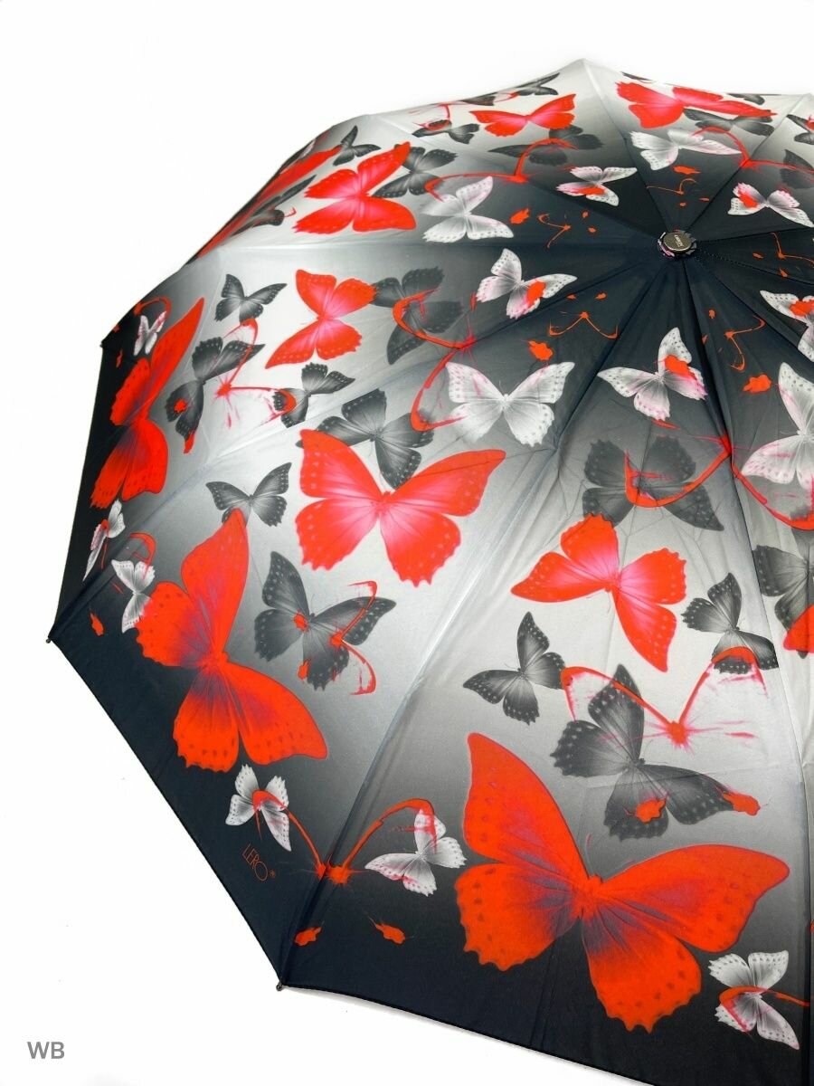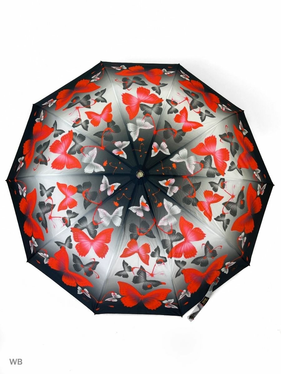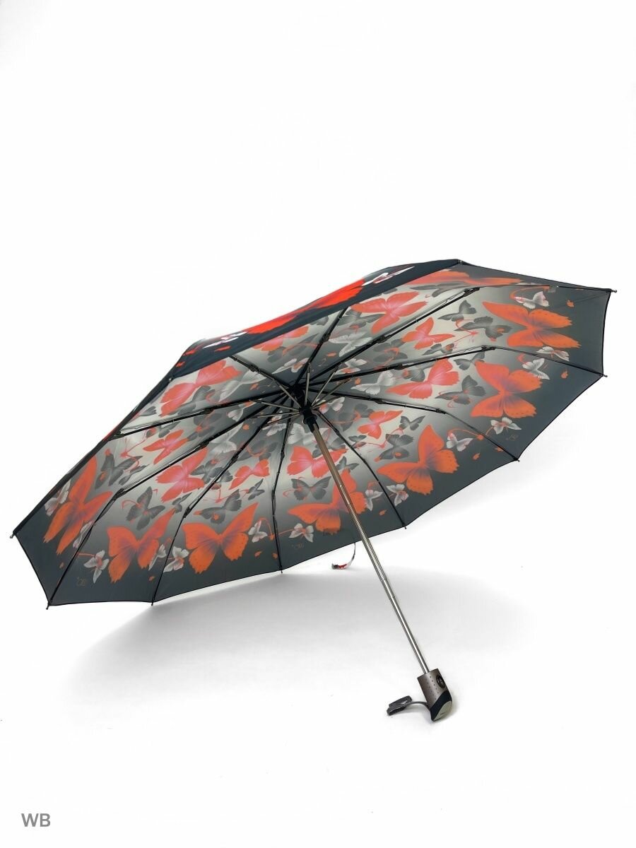Зонт "Три Слона" женский №310-5, купол D=103 см, 10 спиц, суперавтомат бежево-черный