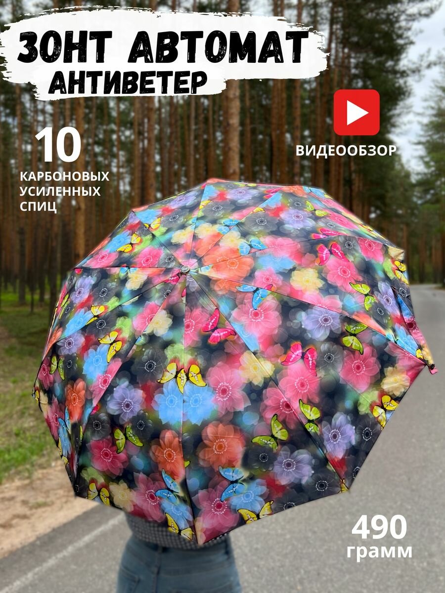 Зонт "Три Слона" женский №310-5, купол D=103 см, 10 спиц, суперавтомат бежево-черный
