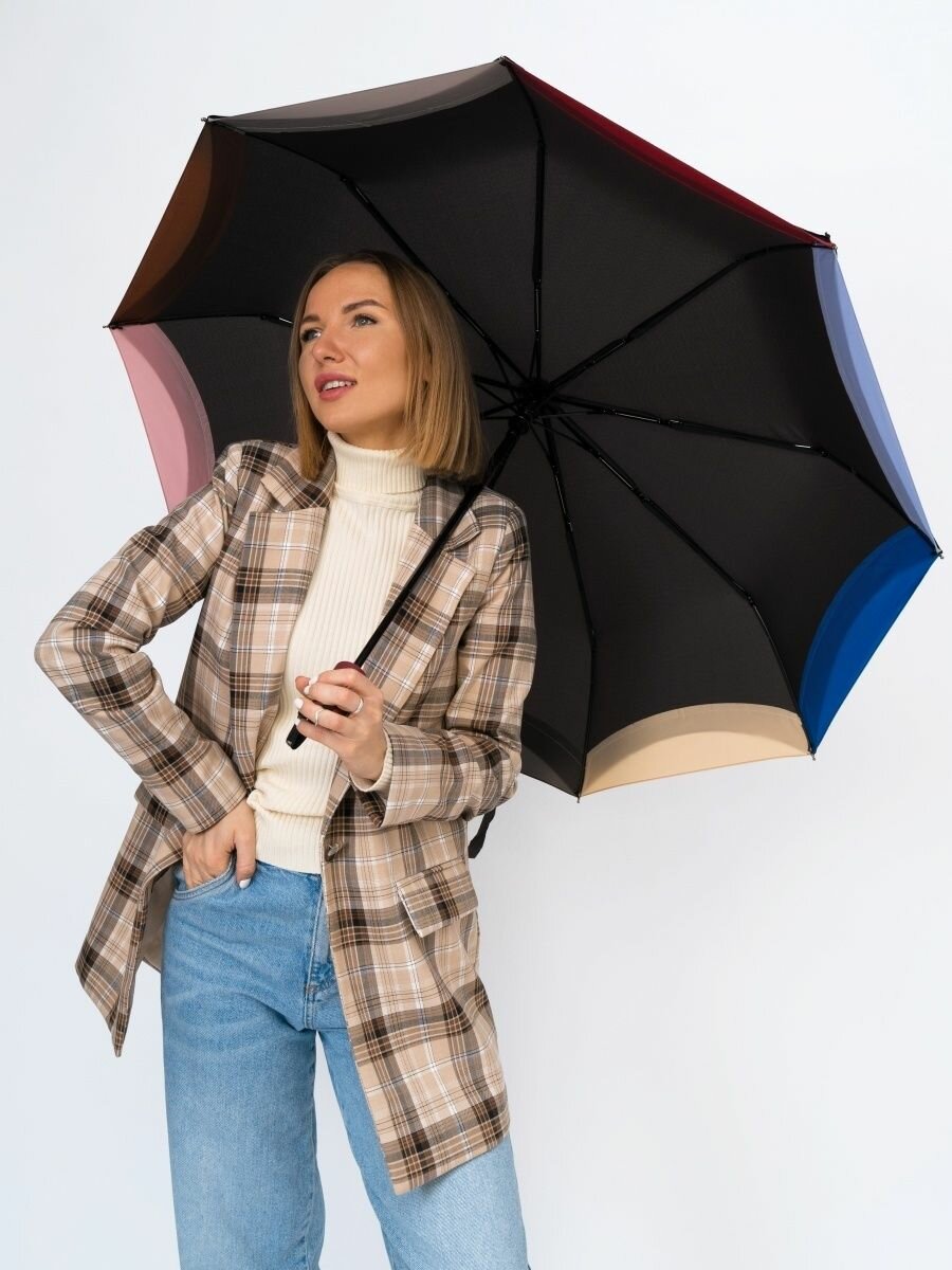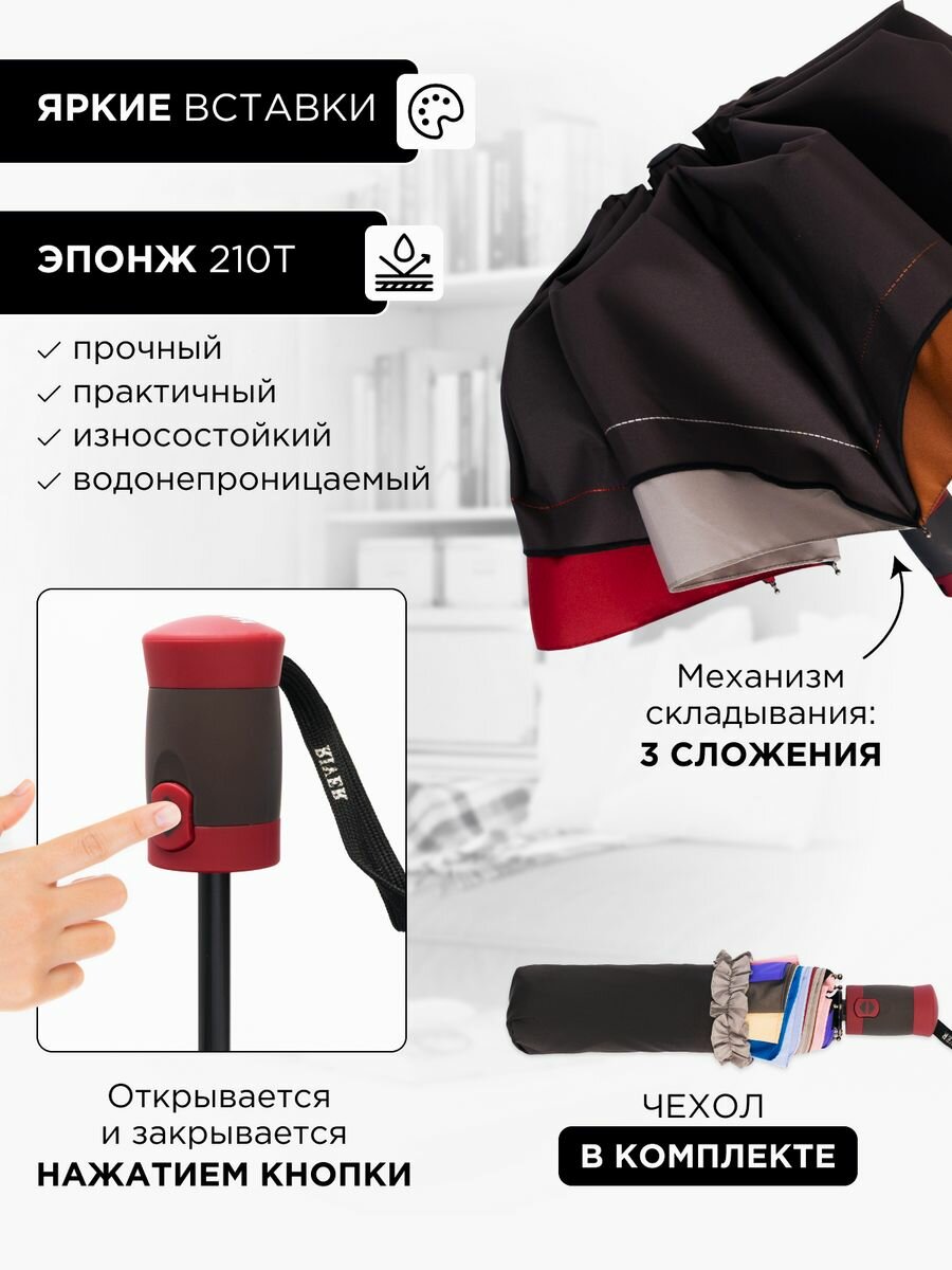 Зонт "Три Слона" женский №310-5, купол D=103 см, 10 спиц, суперавтомат бежево-черный