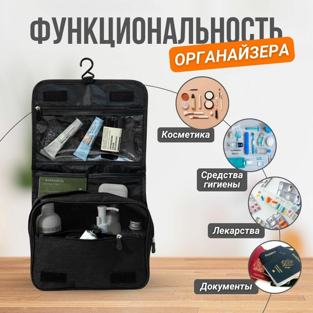 Дорожный органайзер 24х20х9.5 см, , черный интересное: