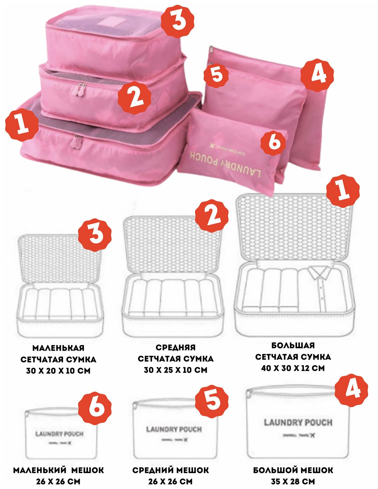 Органайзер для сумки XPX, 40х30, , ярко-розовый