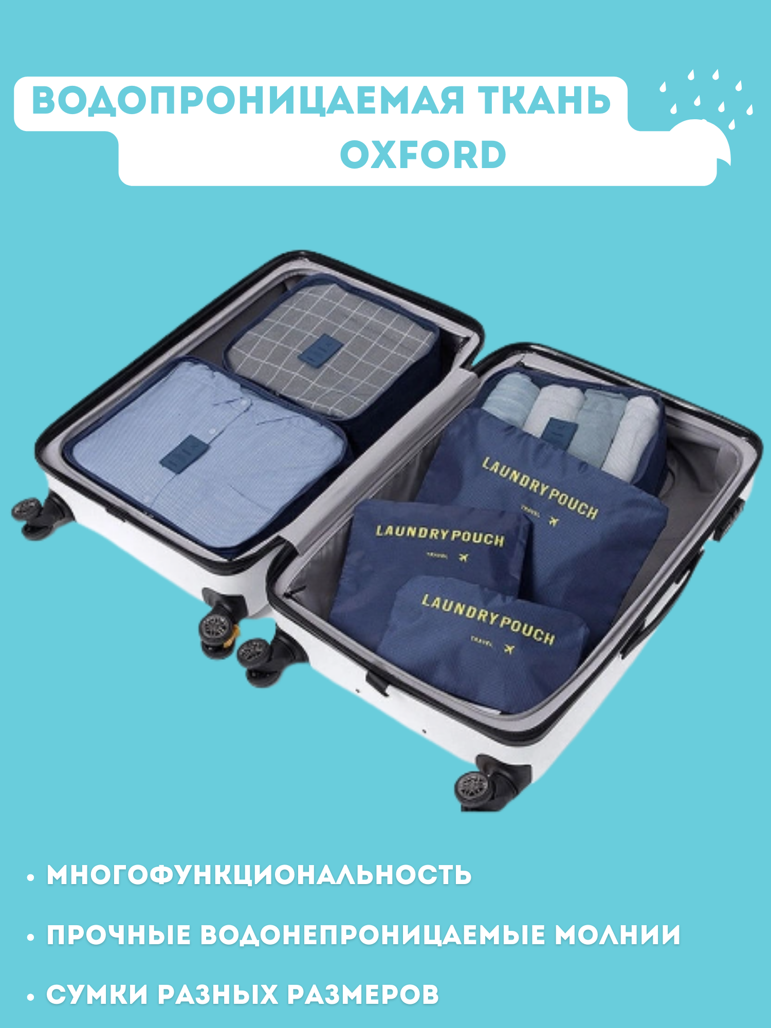 Комплект косметичек XPX, 40х30х12 см, , голубой