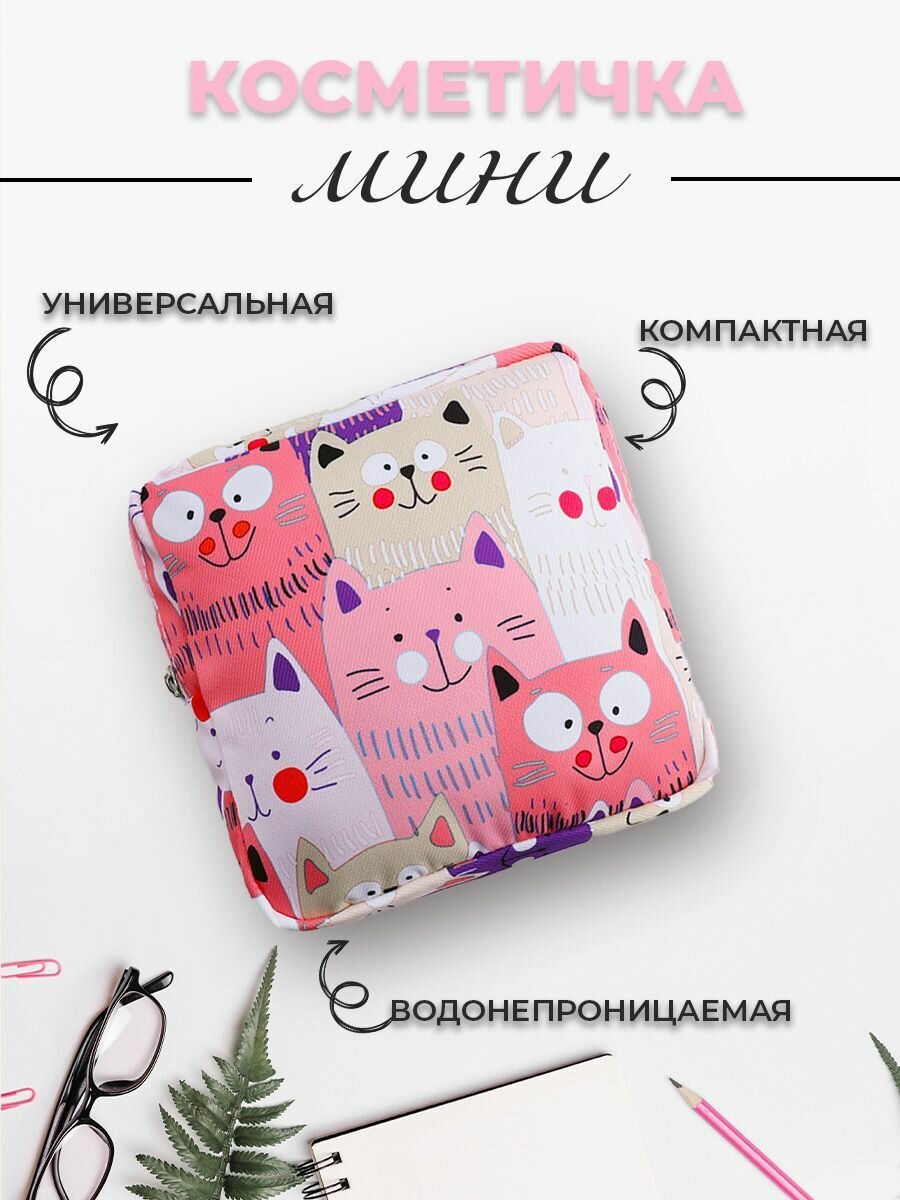 Косметичка 13х12, , голубой/розовый
