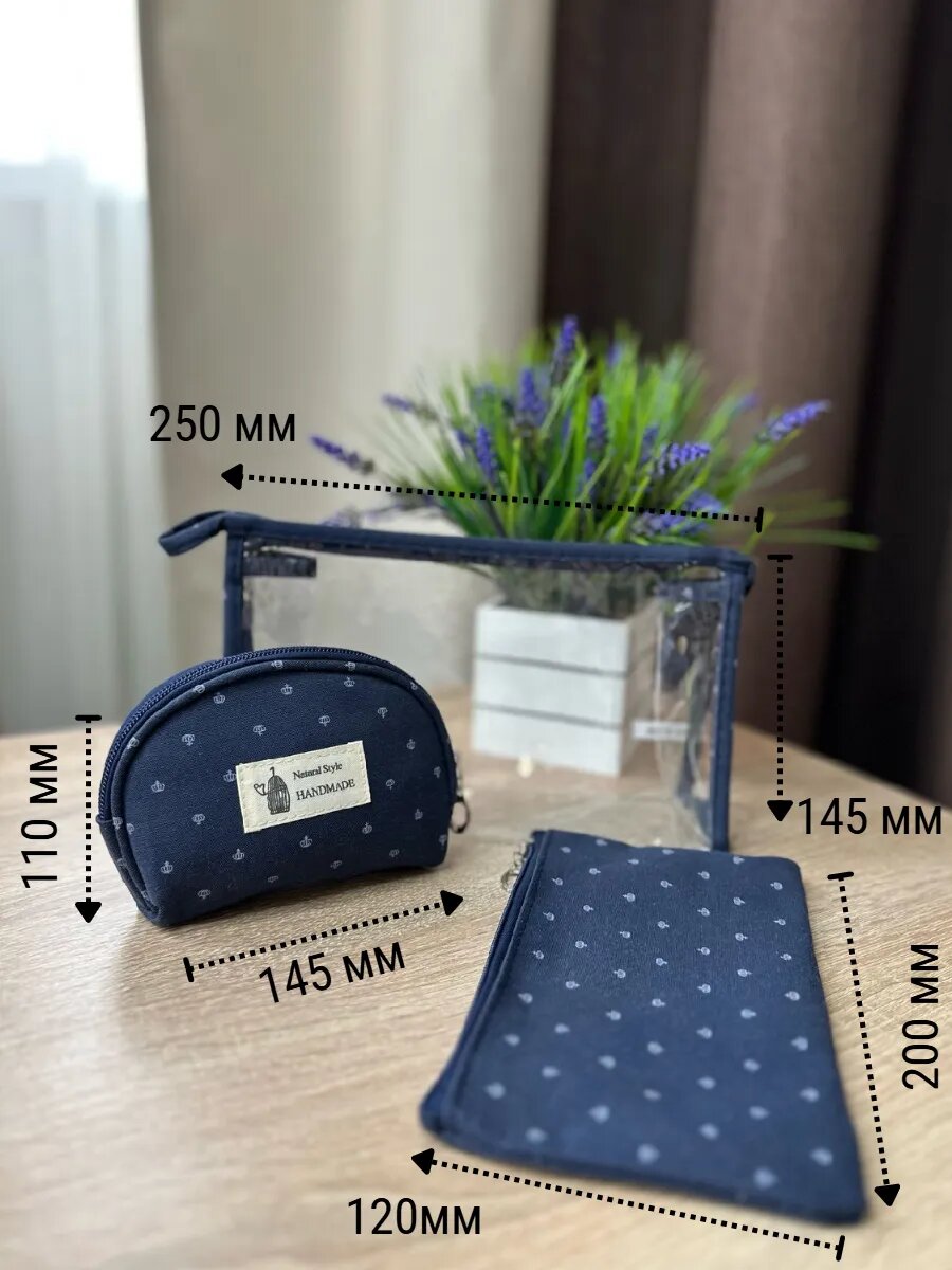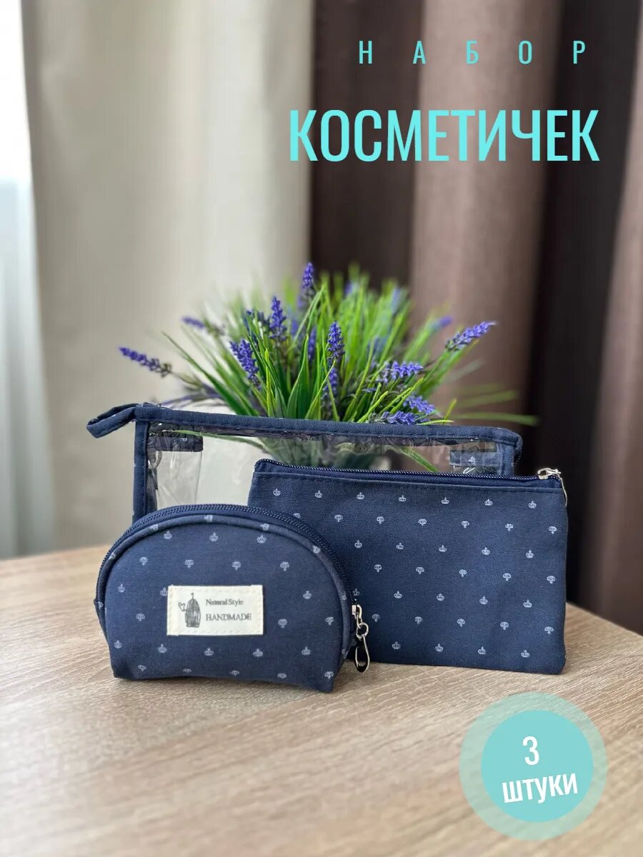 Купить Косметичка 6.5х14.5х24.5 см, 3 шт., , синий