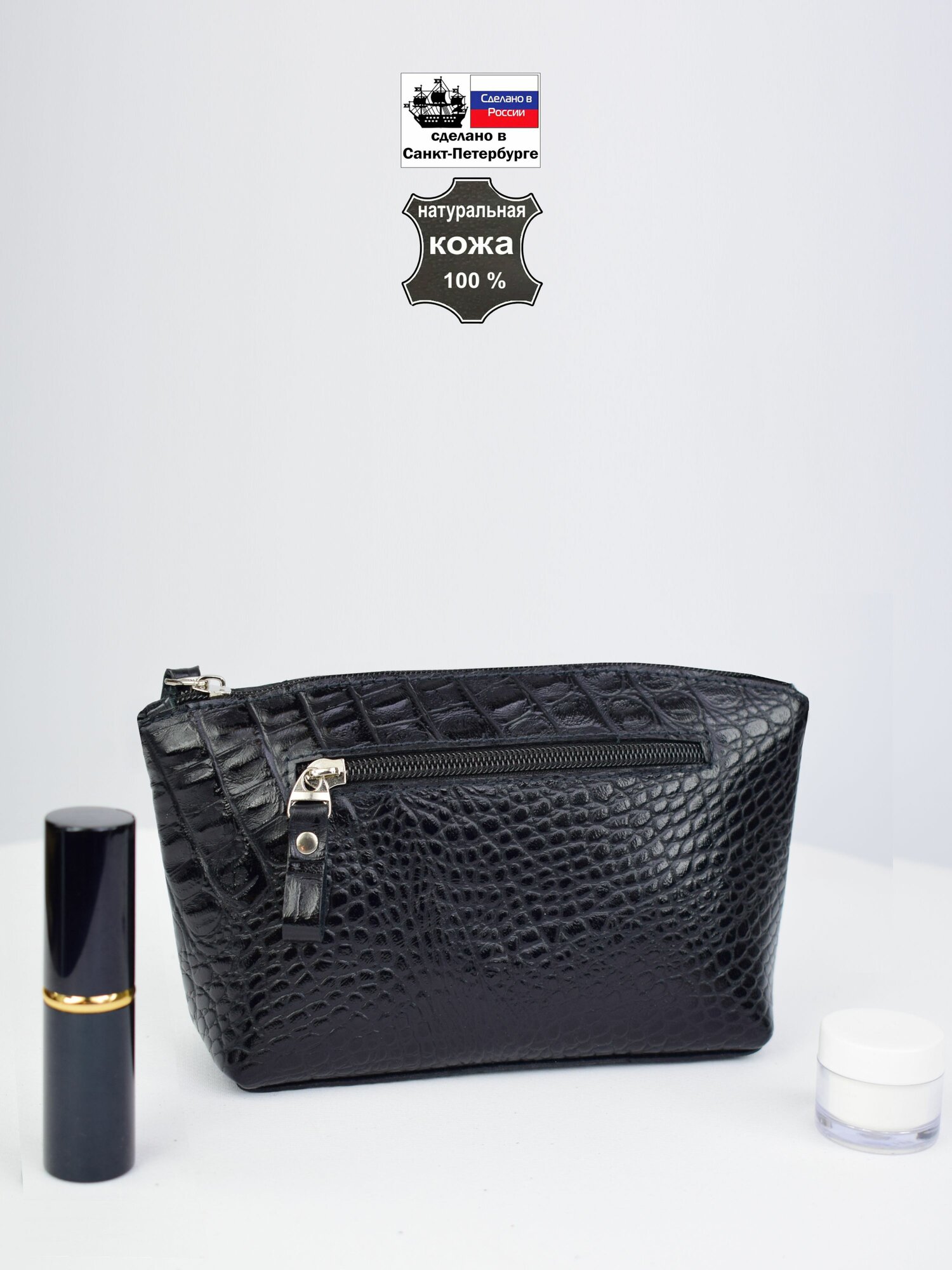 Косметичка RUSSIAN HandMade, 14х15х23 см, , черный