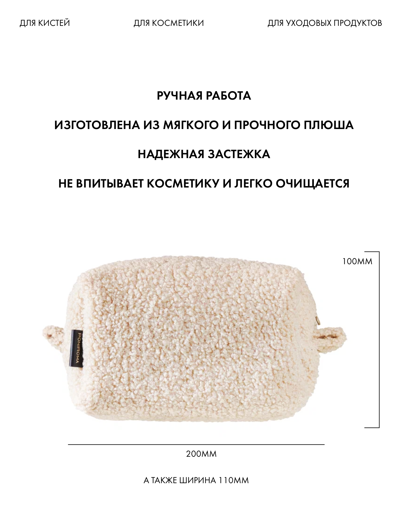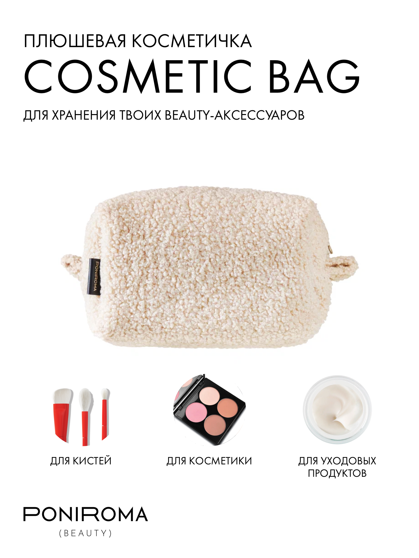 Косметичка PONIROMA, 22х12, , бежевый интересное: