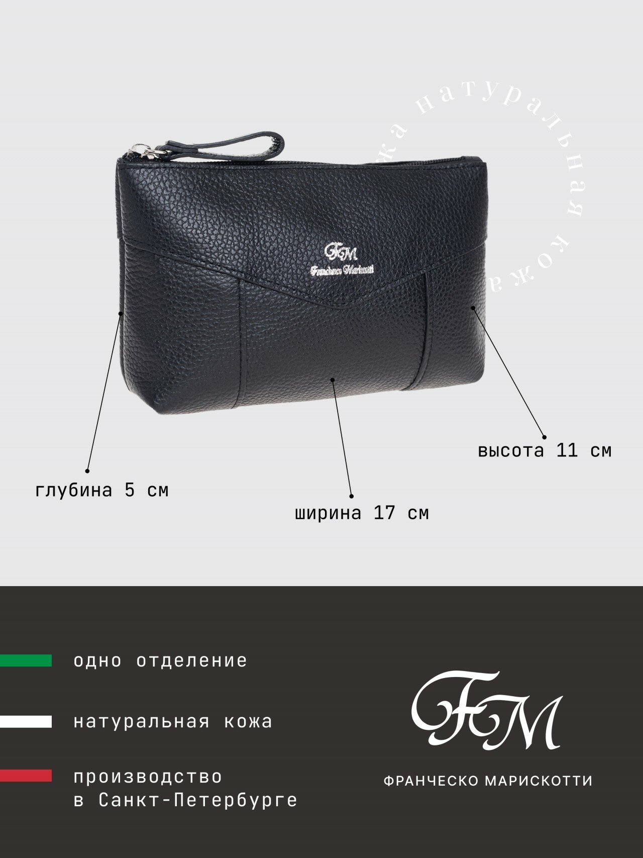 Косметичка Franchesco Mariscotti, 5х11х17 см, , черный интересное: