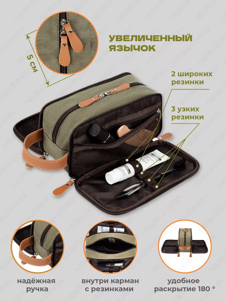 Косметичка NEOKIRMAN, 26х14х13 см, , зелeный интересное:
