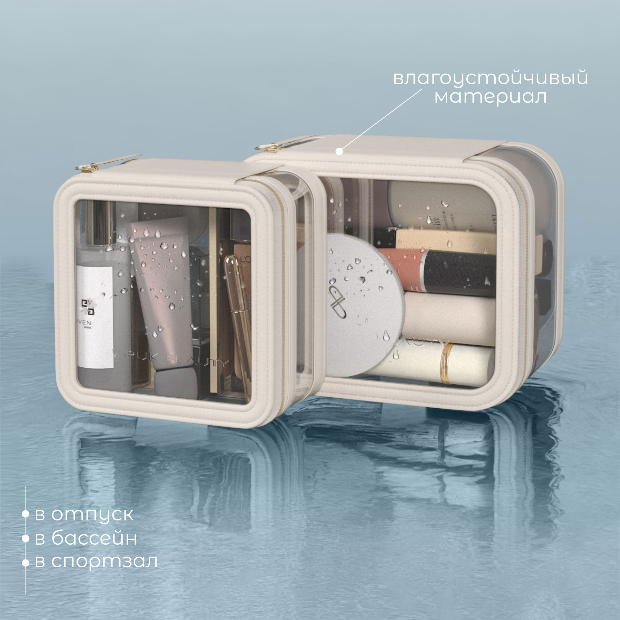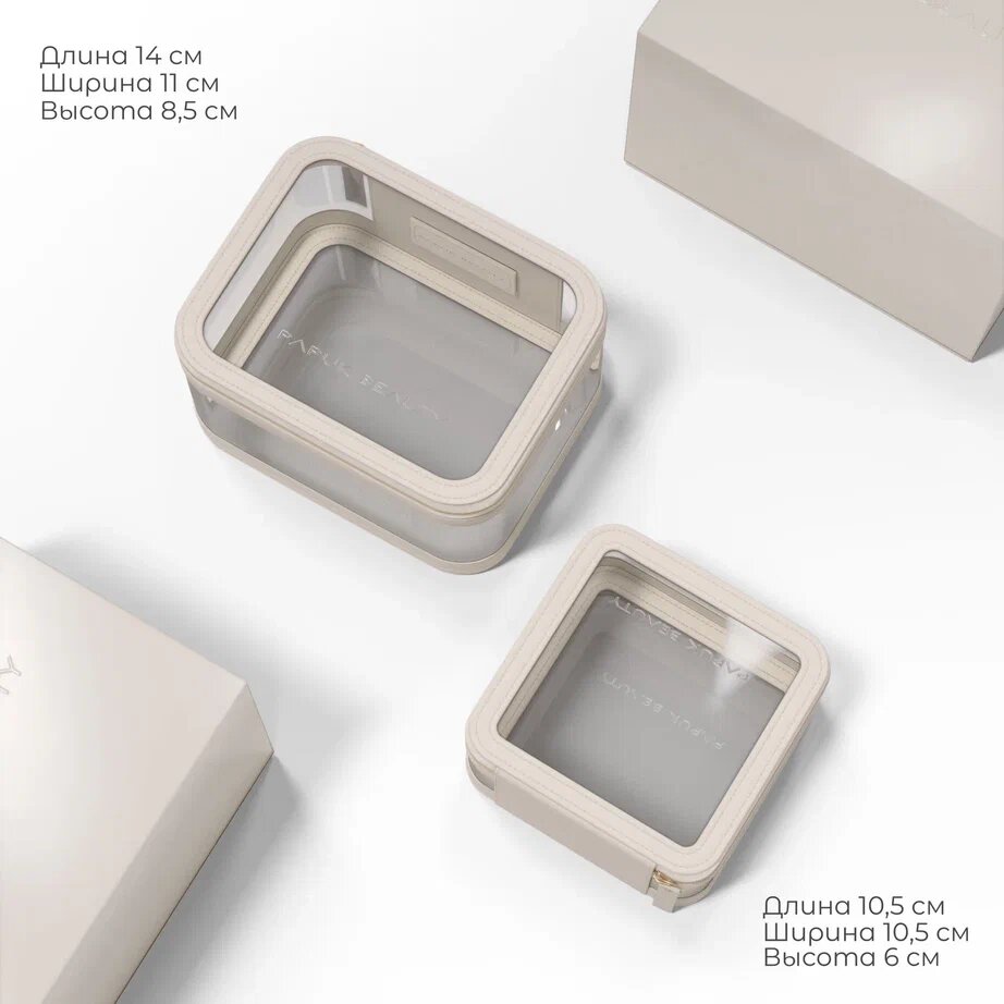 Косметичка Papuk Beauty, 11х8.5х14 см, 2 шт., , молочный интересное:
