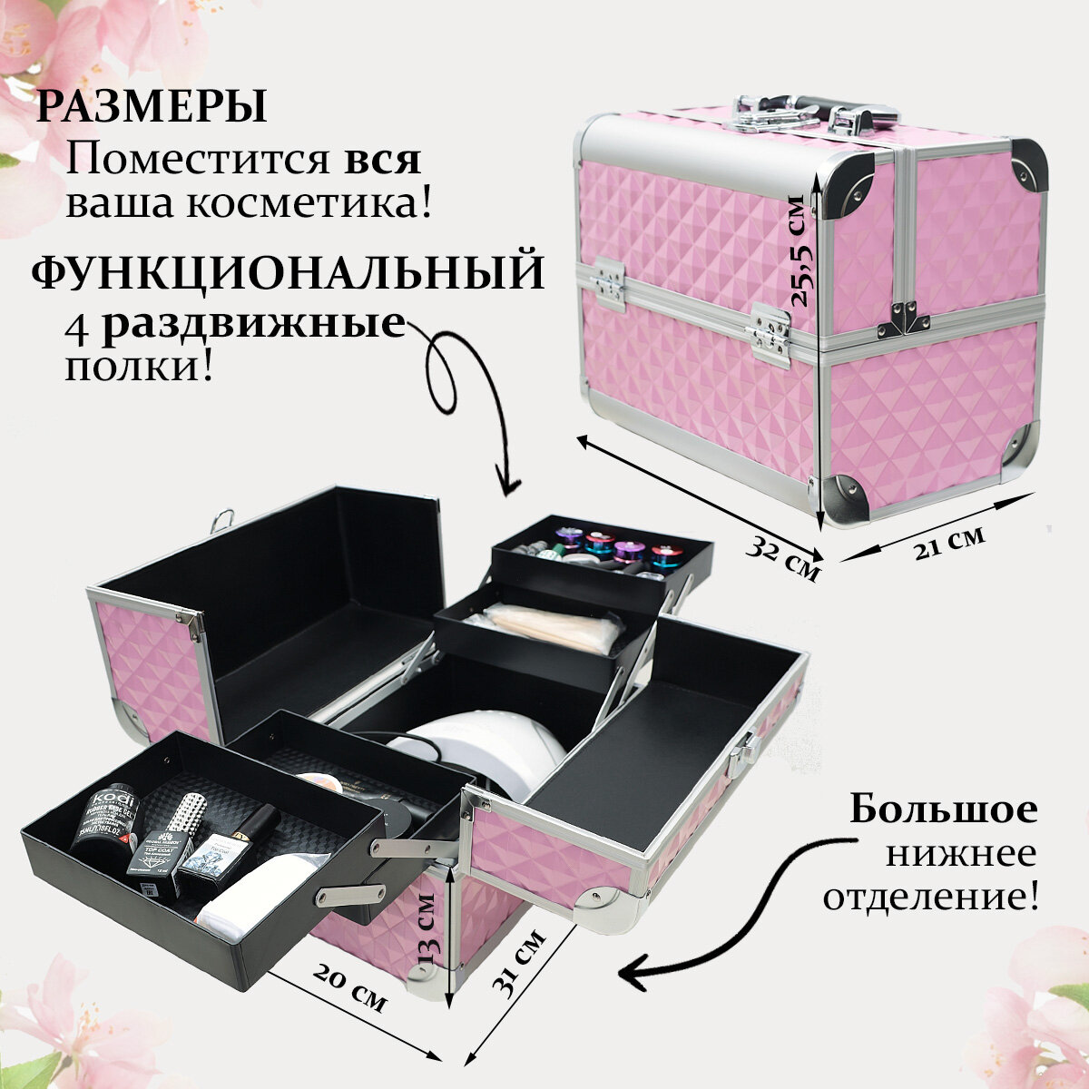 Бьюти-кейс Tartiso, 21х25.5х32 см, 5 шт., , розовый интересное: