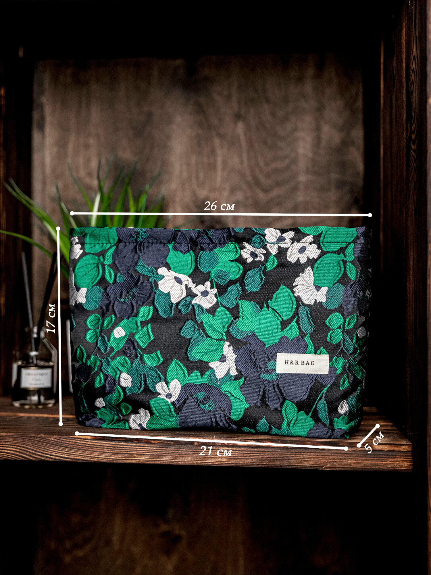 Косметичка 5х17х26 см, , зеленый, серебряный