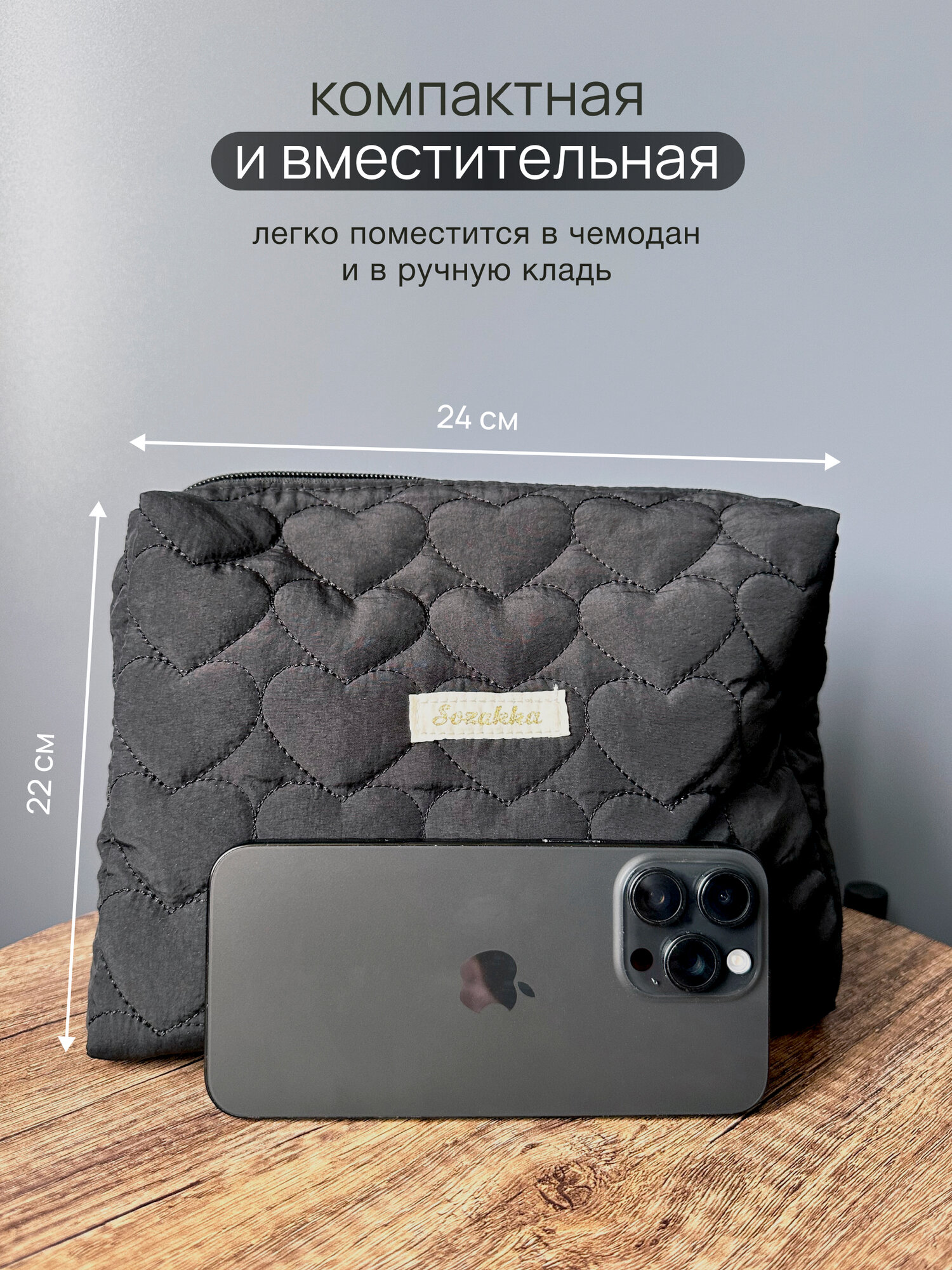 Косметичка 24х22, , черный интересное: