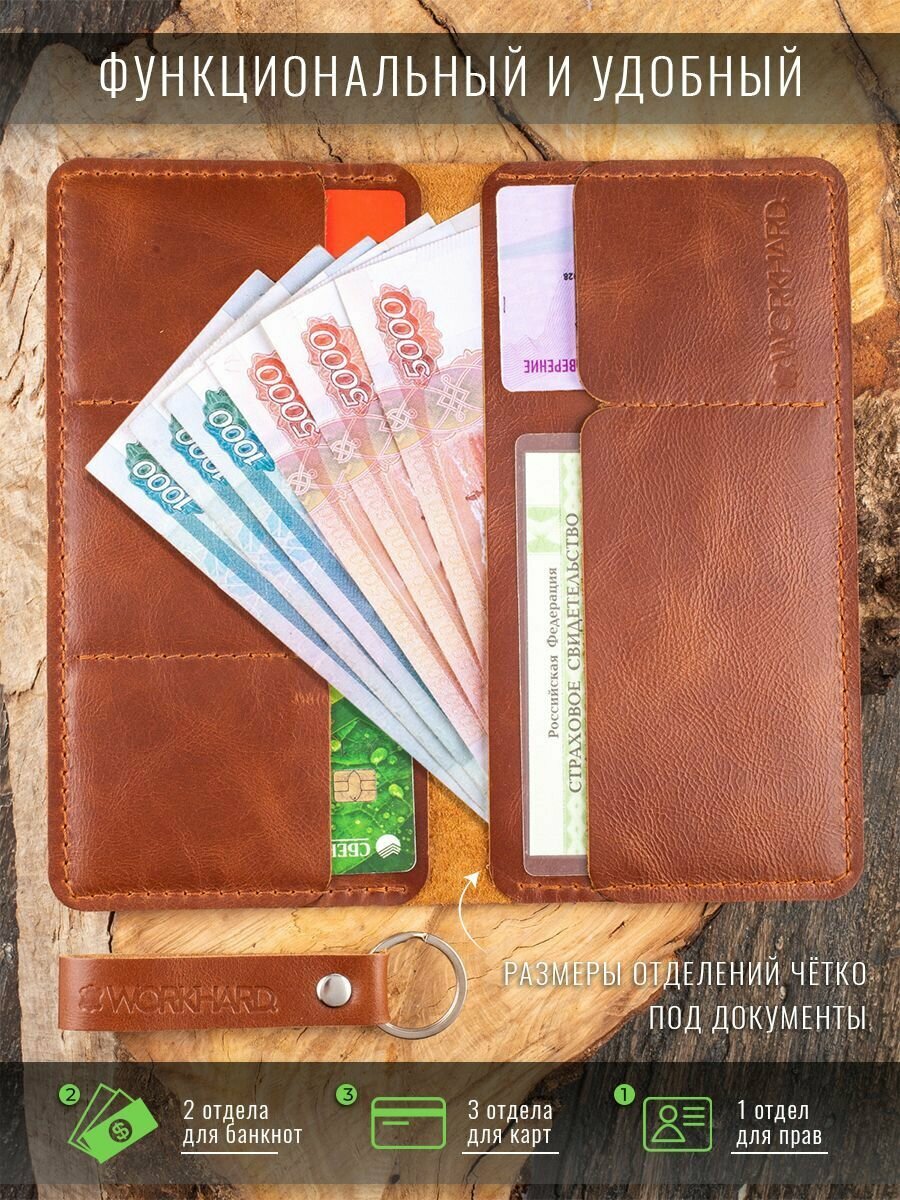 Портмоне WORKHARD, фактура гладкая, глянцевая, зернистая, светло-коричневый интересное: