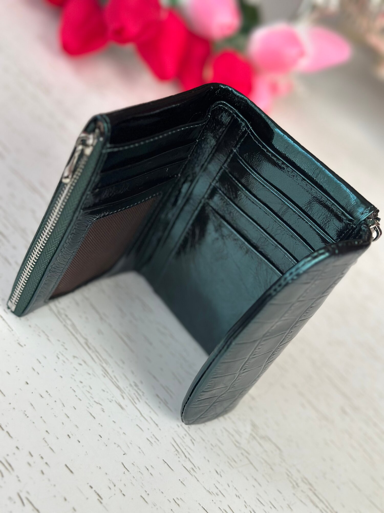 Купить Кошелек LAK, фактура гладкая, глянцевая, зелeный