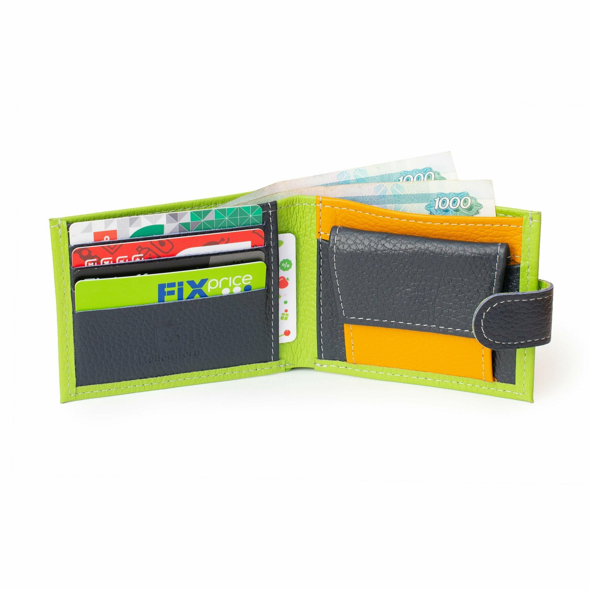 Купить Кошелек HellenBerg, фактура зернистая, горчичный, черный, зеленый