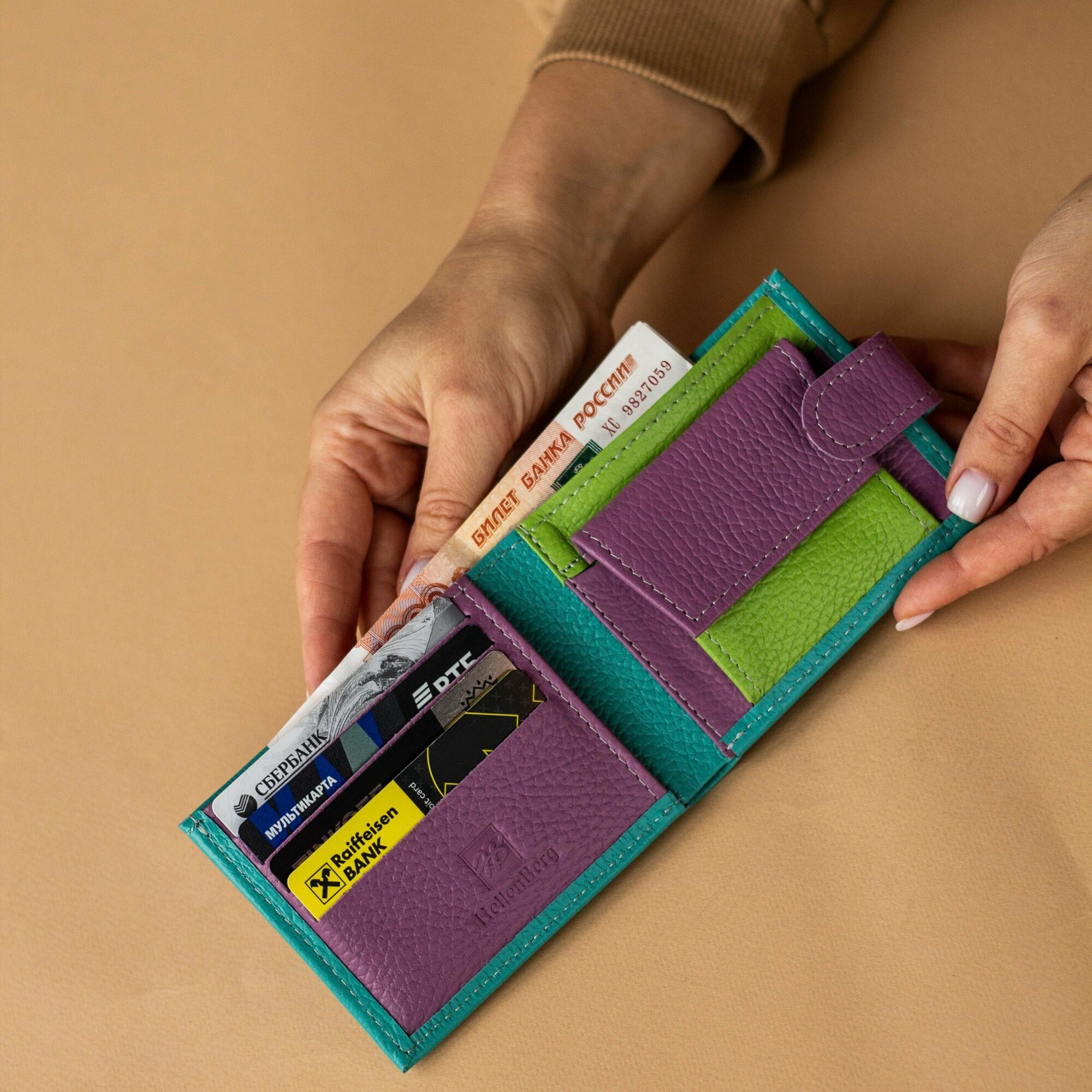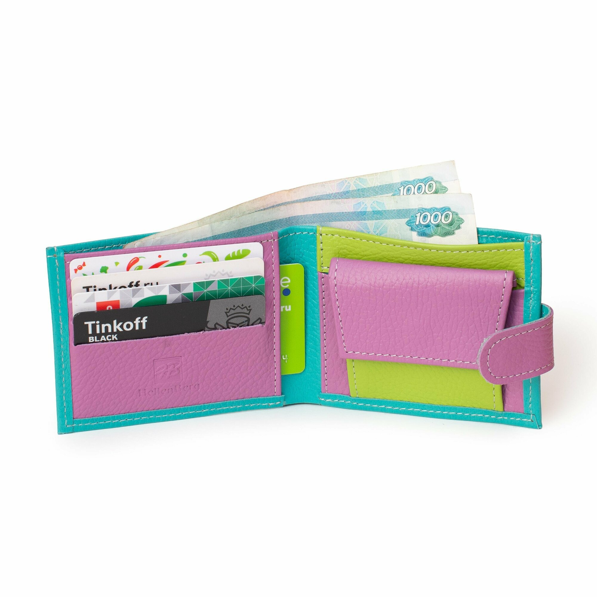 Купить Кошелек HellenBerg, фактура зернистая, мультиколор, бирюзовый, фиолетовый