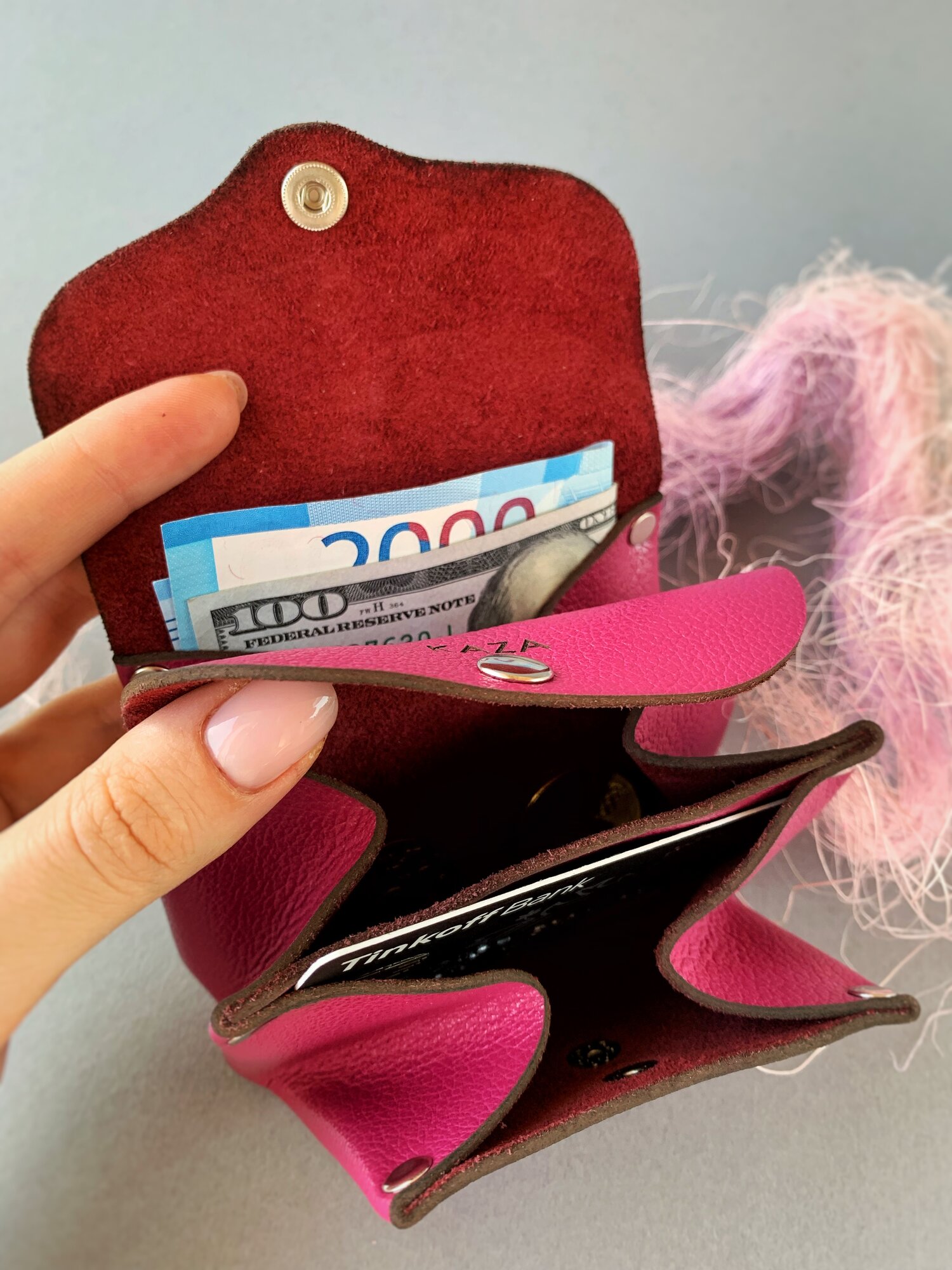 Кошелек KAZA, фактура гладкая, фуксия