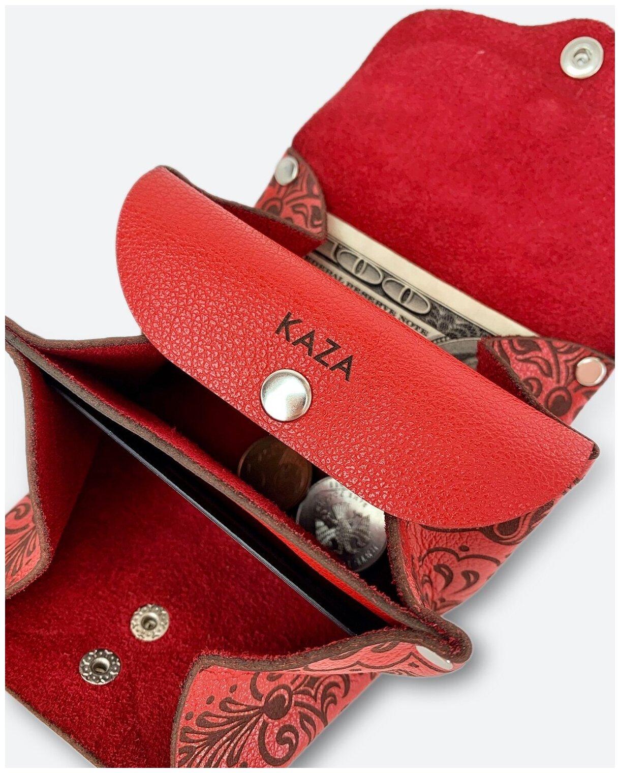 СохранитьКошелек KAZA, фактура гладкая, алый интересное: