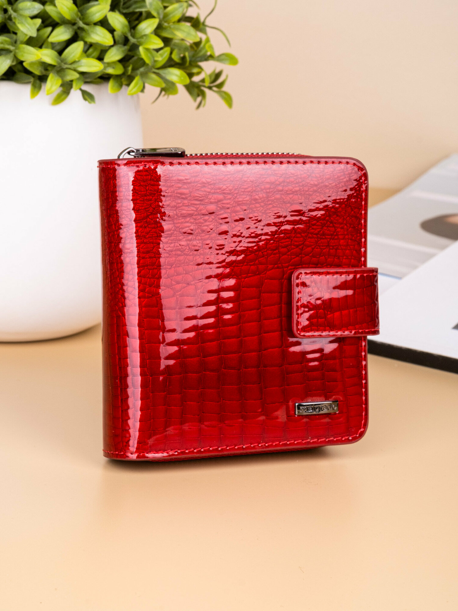 Купить Кошелек VIENZA, фактура под рептилию, лаковая, red 44